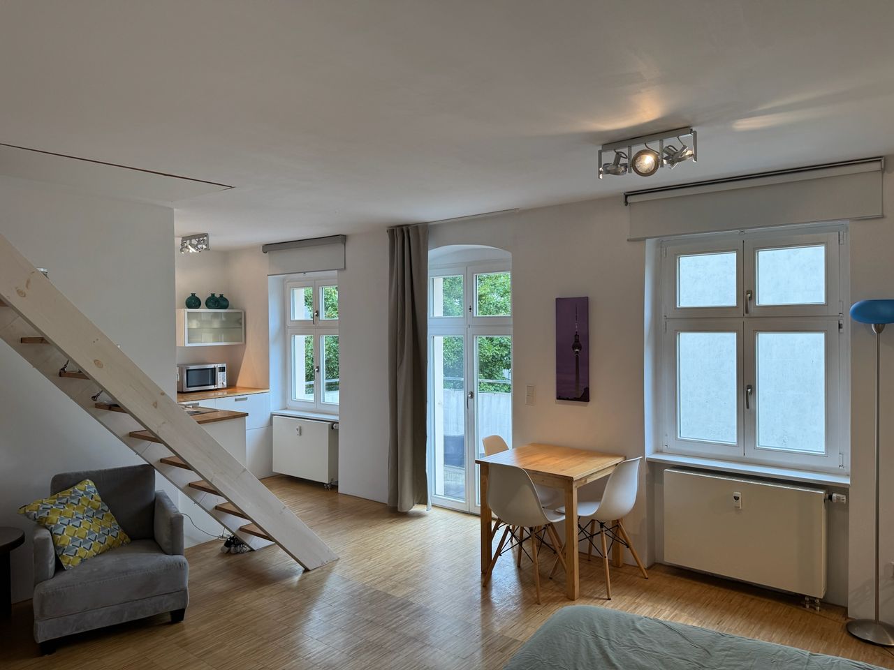 Studio mit Balkon und Blick auf den Fernsehturm in der Mitte von Mitte