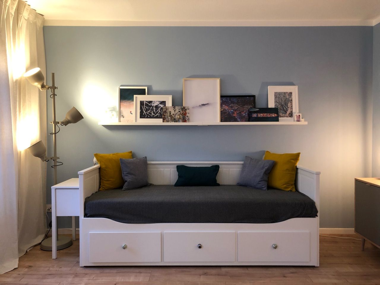 🇬🇧 The studio apartment has a size of 29sqm and is located on the mezzanine of a building with a total of 5 floors - south facing. There is a day bed to accommodate two persons. Equipment Kitchenette: Dishwasher, oven, cooker, toaster, electrical kettle, espresso machine - fully equipped with all that is needed to prepare and enjoy drink and food. Living and sleeping area: Day bed, dining table with chairs and bench, reading chair, side board, TV. The studio offers a comfortable 'walk-in wa...