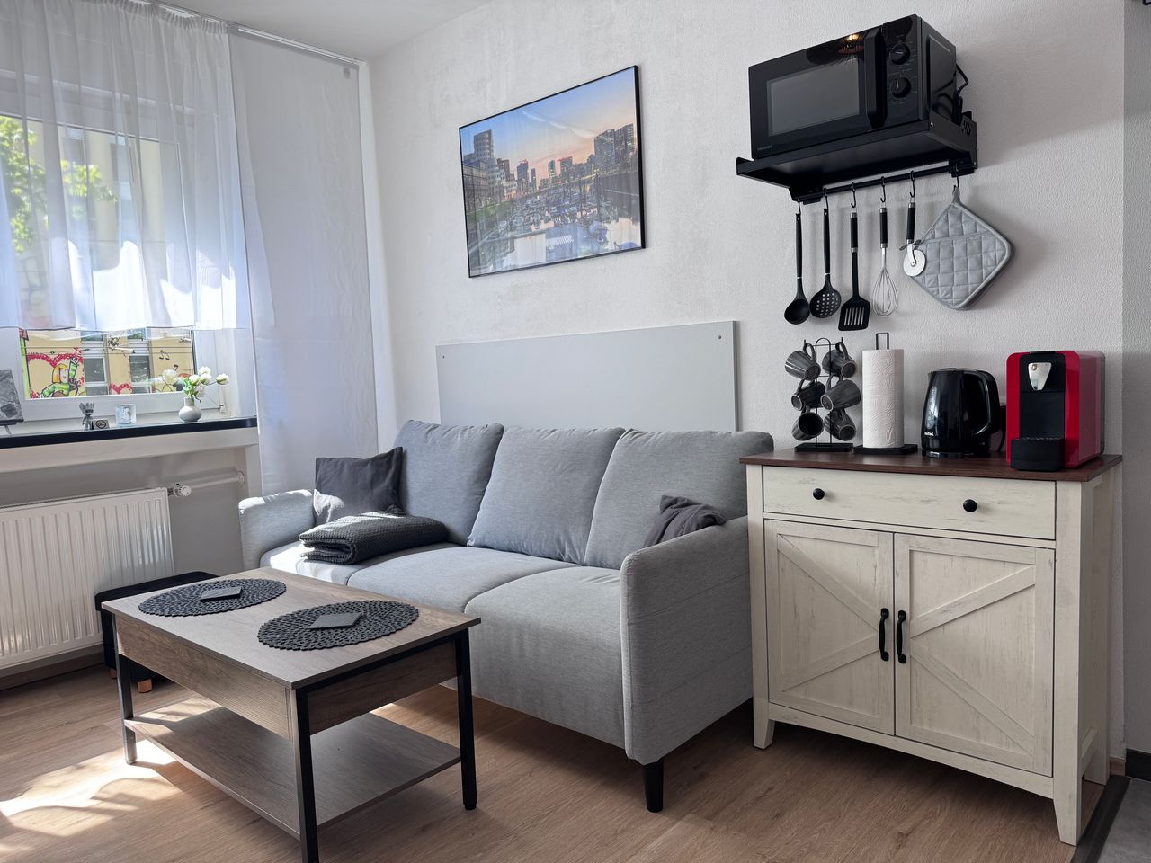 Dieses vollständig möblierte Apartment bietet alles, was Sie für den Alltag benötigen – einfach ankommen und genießen. Die Wohnung erfüllt einen hohen Sicherheitsstandard und wird stets gründlich gereinigt, um Ihnen ein angenehmes und sorgenfreies Einzugserlebnis zu garantieren. Besonderer Wert wurde auf Komfort und Hygiene gelegt: Die bereitgestellte Wäsche ist allergikerfreundlich und sorgt für ein gesundes Wohnklima. Ausstattung im Überblick: • Komfortables Bett (1,40 m x 2,00 m) • Gemütl...