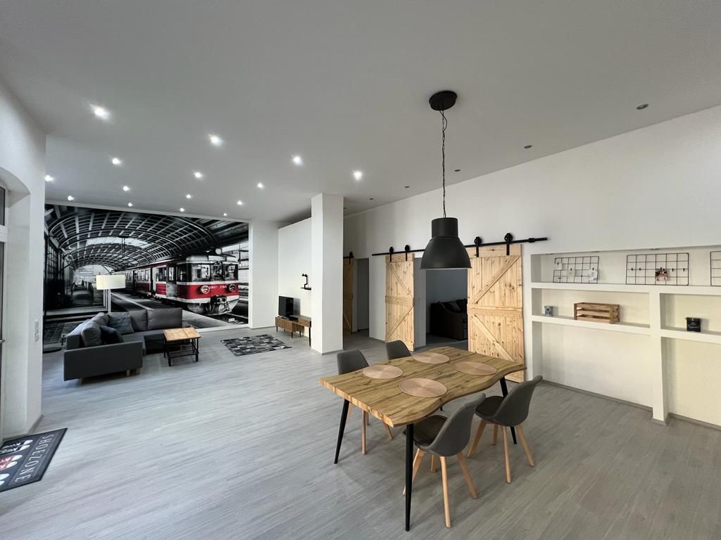 Super stylische, vollmöblierte Loftwohnung ! Eine ganz neu ausgebaute, moderne Loftwohnung auf 100 qm. Die Komplettsanierung wurde im Oktober 2023 fertig gestellt. Die Wohnung ist komplett möbliert (ganz neue Möbel) und hochwertig ausgestattet. Es ist alles vorhanden (Sofa, Couchtisch, Smart TV, Einbauküche mit Spülmaschine, Esstisch mit Stühlen, Bartisch mit Stühlen, Doppelbett, Lampen, Teppiche, Deko, Bilder etc.). Die Einbauküche ist ebenfalls komplett eingerichtet mit Töpfen, Geschirr...