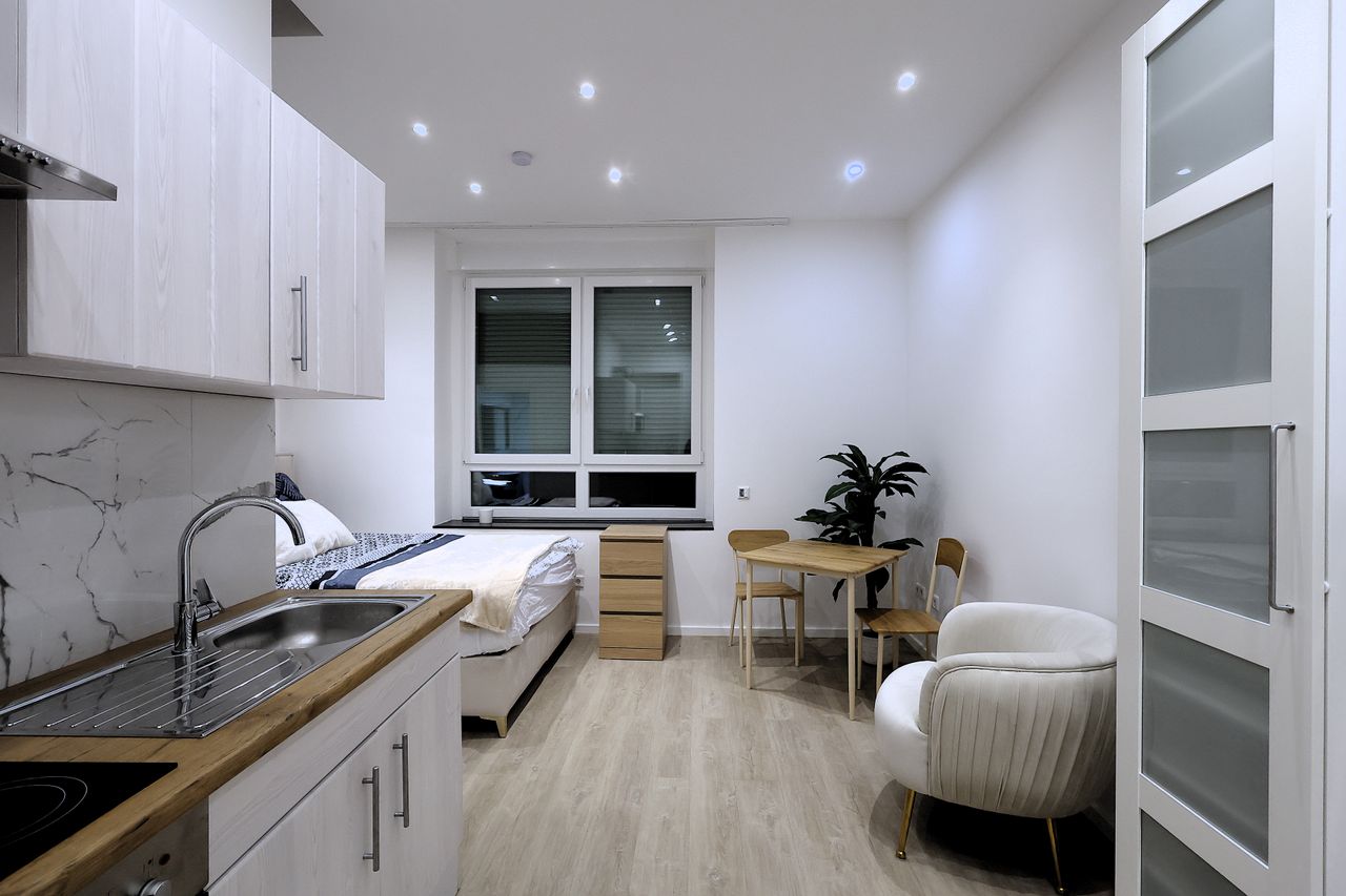 Vollständig möbliertes 1-Zimmer-Apartment – sofort bezugsfertig Dieses moderne, kernsanierte 1-Zimmer-Apartment (2025) bietet Ihnen alles, was Sie für einen komfortablen Aufenthalt benötigen. Es ist vollständig eingerichtet – von Bettwäsche bis hin zu Küchenbesteck – und eignet sich ideal für Menschen, die einfach nur ihren Koffer mitbringen und einziehen möchten. Es eignet sich ideal für Singles oder Paare, die eine sofort bezugsfertige Wohnung suchen. Ausstattung: - Kernsanierung 2023: Mod...