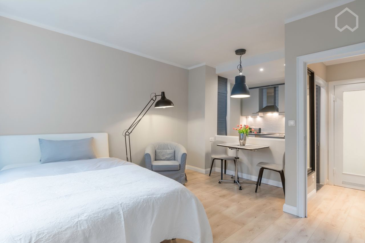 🇩🇪 Das Studio Apartment befindet sich direkt an der wunderschönen Alster. Das Apartment bietet auf ca. 30m² ein einmaliges Wohnerlebnis: Doppelbett 140x200, TV, kostenfreies W-LAN, Blick ins Grüne, vollausgestattete Küche (inkl. Ceranfeld, Spüle, Kühlschrank, Nespresso-Maschine, Wasserkocher, Geschirrset und Besteck, Toaster, u. v. m.). Ausstattung: WLAN Muuto Stühle USM Haller Tisch TV Handtücher und Bettwäsche Föhn 200x200 Daunendecke und Daunenkissen Boxspringbett inkl. Topper Miele Wasc...