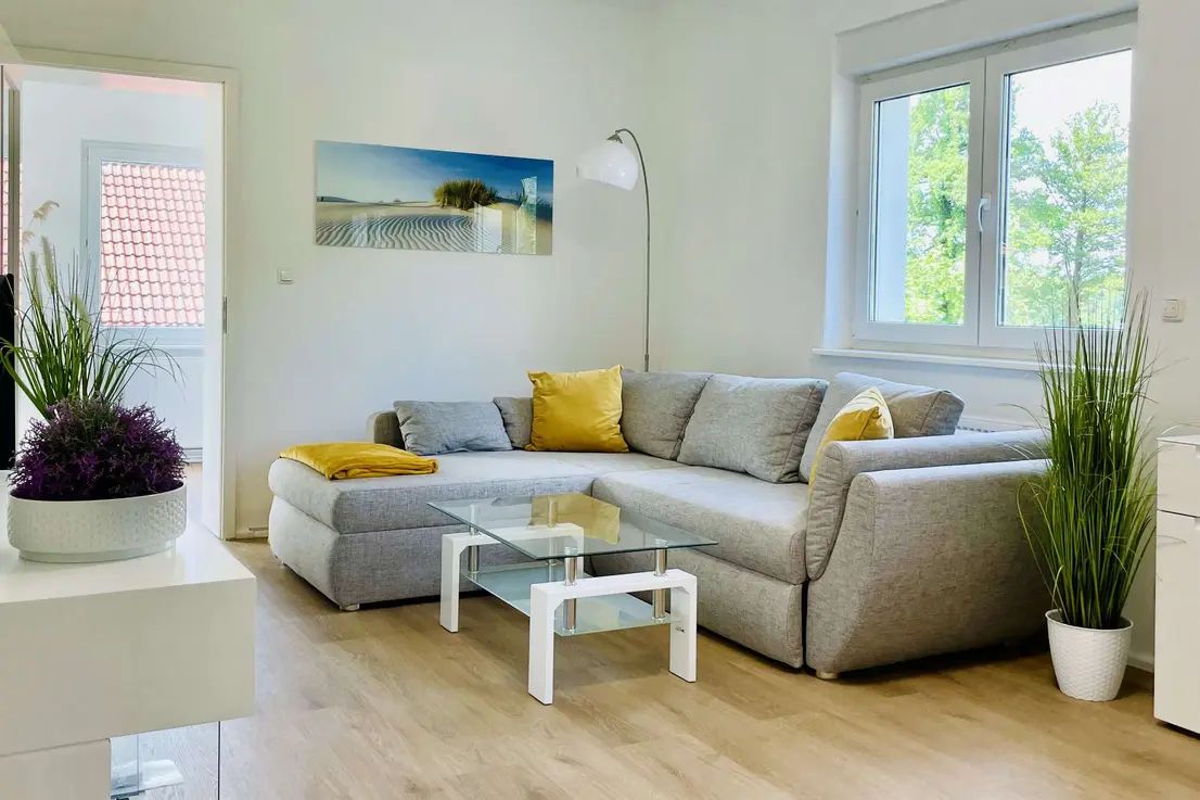 Die frisch renovierte und komplett neu ausgestattete 3-Zimmer-Wohnung für zwei Personen mit Seeblick befindet sich in der ersten Etage eines freistehenden Hauses auf einem etwa 500 qm großen Grundstück. Wald- und Seenähe bieten einen hohen Erholungswert. Ausstattung: Das große helle Wohnzimmer mit offener Einbauküche ist mit einer gemütlichen großen Couch, separatem Essplatz, TV und elektrischem Kamin ausgestattet. Die Küchenzeile verfügt über einen Elektro-Herd mit Backofen, eine große Spüle, ...