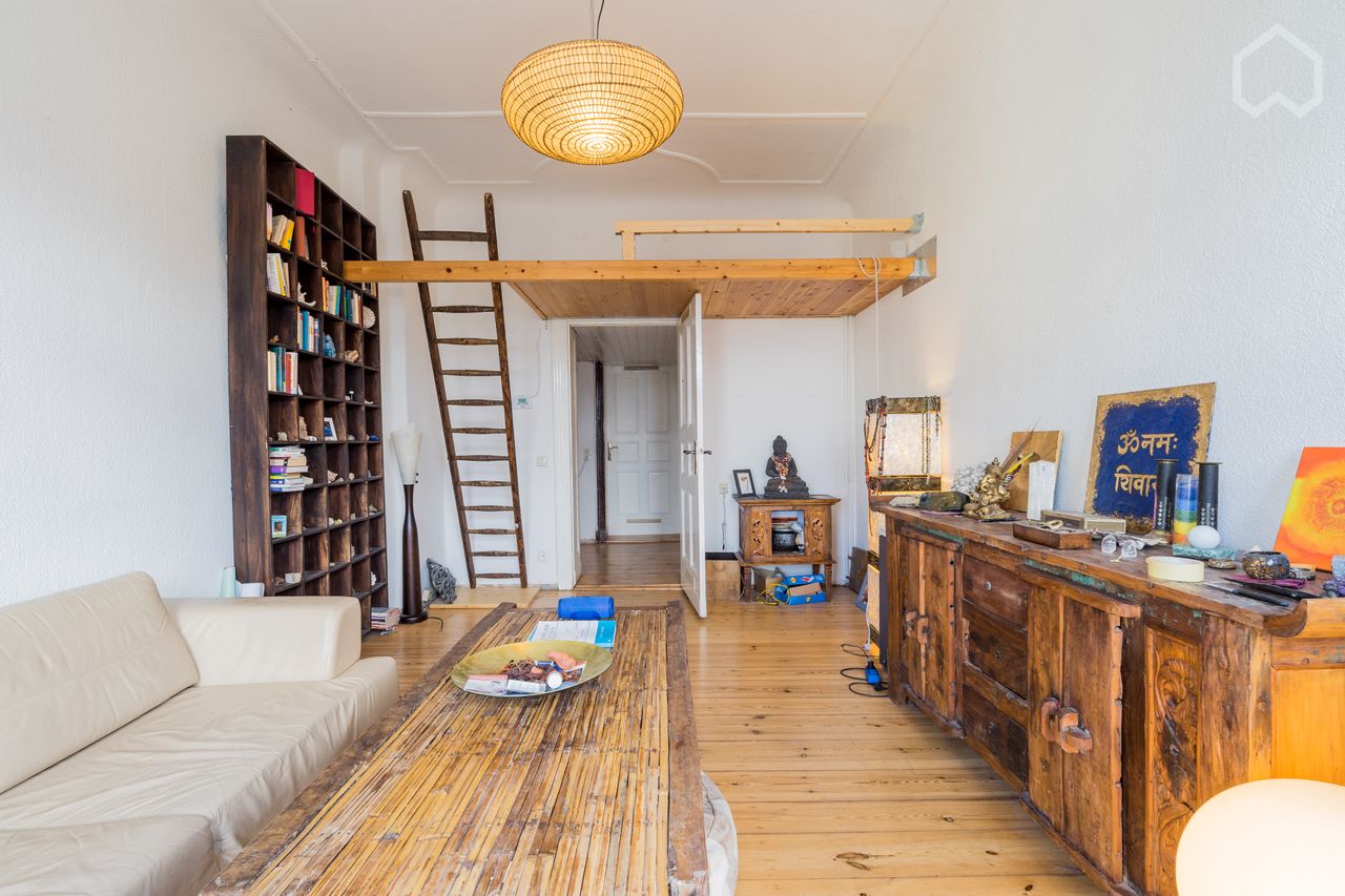 Wunderschöne, helle 2 Zimmer-Altbauwohnung mit geräumigen 70m² und sonnigem Balkon in Berlin-Friedrichshain. Die Wohnung ist mit allem ausgestattet, was für das tägliche Leben benötigt wird. Eine Hochetage im Wohn-/Schlafzimmer bietet zusätzlichen Platz, auf der Hochetage im weiteren Schlafzimmer ist Staufläche vorhanden. Die Küche bietet neben voller Ausstattung einen Esstisch, und das Badezimmer verfügt über eine Badewanne sowie Tageslicht. Beautiful, bright 2 room old building flat with s...
