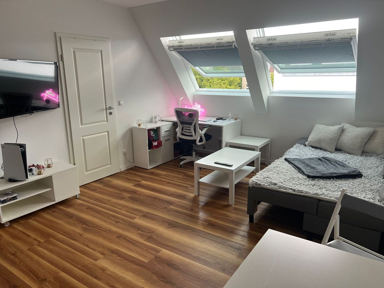 Wir bieten eine wunderschöne luxuriöse 1,5 Zimmer Dachgeschoßwohnung, diese ist hochwertig ausgestattet und verfügt über Klimaanlage und Fußbodenheizung. In der Bruttowarmmiete sind alle Betriebs- u. Heizkosten, sowie Internet WLAN/LAN und Kabel-TV enthalten. Der Mieter trägt nur seine Stromkosten Alle Böden sind mit Fußbodenheizung und Eichenholz-Vinyl ausgelegt. Die Bäder sind vollständig gefliest und mit begehbaren Regendusche ausgestattet. Alle Wohnungen sind vollausgestattet mit Duschbad...