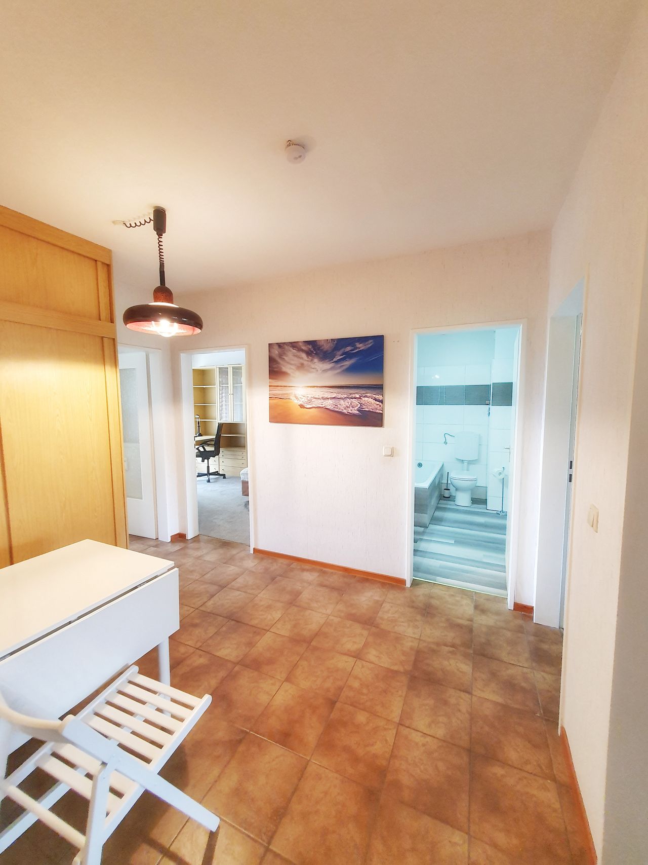 Die sonnige 3-Zimmer-Wohnung in der 1. Etage eines gepflegten Mehrfamilienhauses ist zu einem grünen Innenhof gelegen. Die Wohnung hat insgesamt drei Zimmer, Ein Wohn und zwei Schlafzimmer. Die beiden Schlafzimmer können auch als Arbeitszimmer genutzt werden. Ein Zimmer ist mit einem Boxspringbett (140x200) und das andere mit einem Einzelbett (90x200) ausgestattet. Bettdecken, Kissen und Bettwäsche sind vorhanden. Von einem der beiden Schlafzimmer geht ein kleiner Balkon ab. Ein großer überdach...
