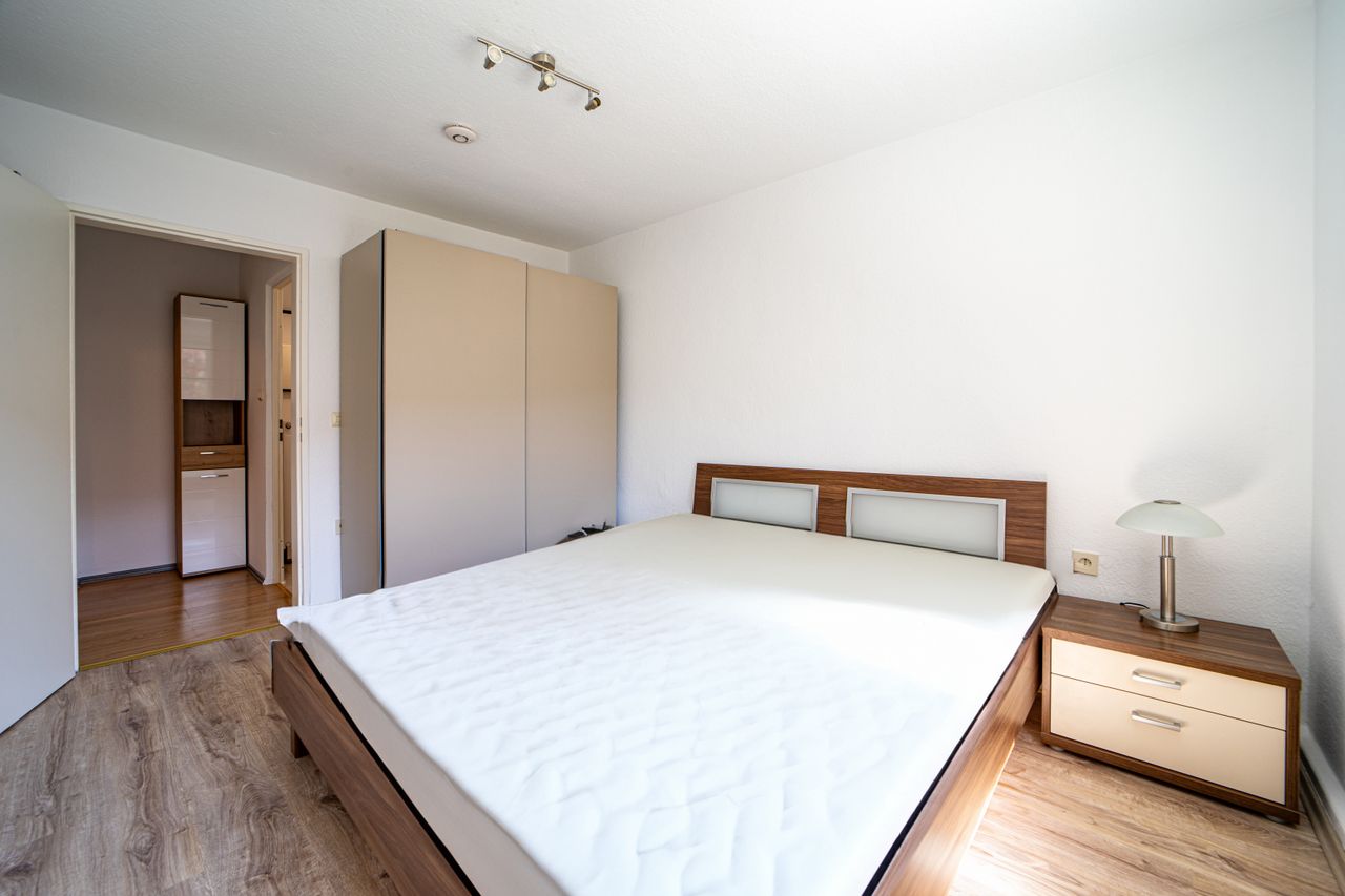 Die möblierte 2-Zimmer-Wohnung befindet sich im 1. Stock eines Hauses mit 4 Wohnungen. Geeignet für 3 Erwachsene. Bodenbelag: Laminat und PVC in der Küche. Die Einbauküche ist ausgestattet mit Waschmaschine, Geschirrspüler, Herd & Ofen, Kühlschrank & Gefrierfach sowie Tellern und Kochutensilien. 1.1) Von der Küche gelangt man auf den Balkon mit Blick auf den ruhigen Garten. Das Schlafzimmer verfügt über ein 1,80 m Doppelbett und einen Kleiderschrank. Das Wohnzimmer hat ein 0,90 m Bett, das ...