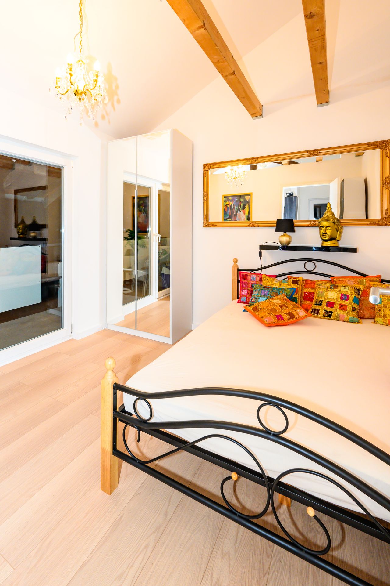 Die Wohnung befindet sich in Grau Rheindorf, einem romantischen kleinen Stadtteil von Bonn mit dörflich Flair und hoher Wohnqualität mit Geschäften und Bars und Restaurants in der Nähe, die fußläufig erreichbar sind Es gibt eine sehr gute Anbindung der öffentlichen Verkehrsmittel: die Innenstadt und der Bahnhof sind nur 15 Minuten mit dem Bus erreichbar Der Rhein ist in 4 Minuten fußläufig erreichbar Die Bushaltestelle ist in nur 3 Minuten fußläufig von der Wohnung entfernt Die Wohnung hat ...