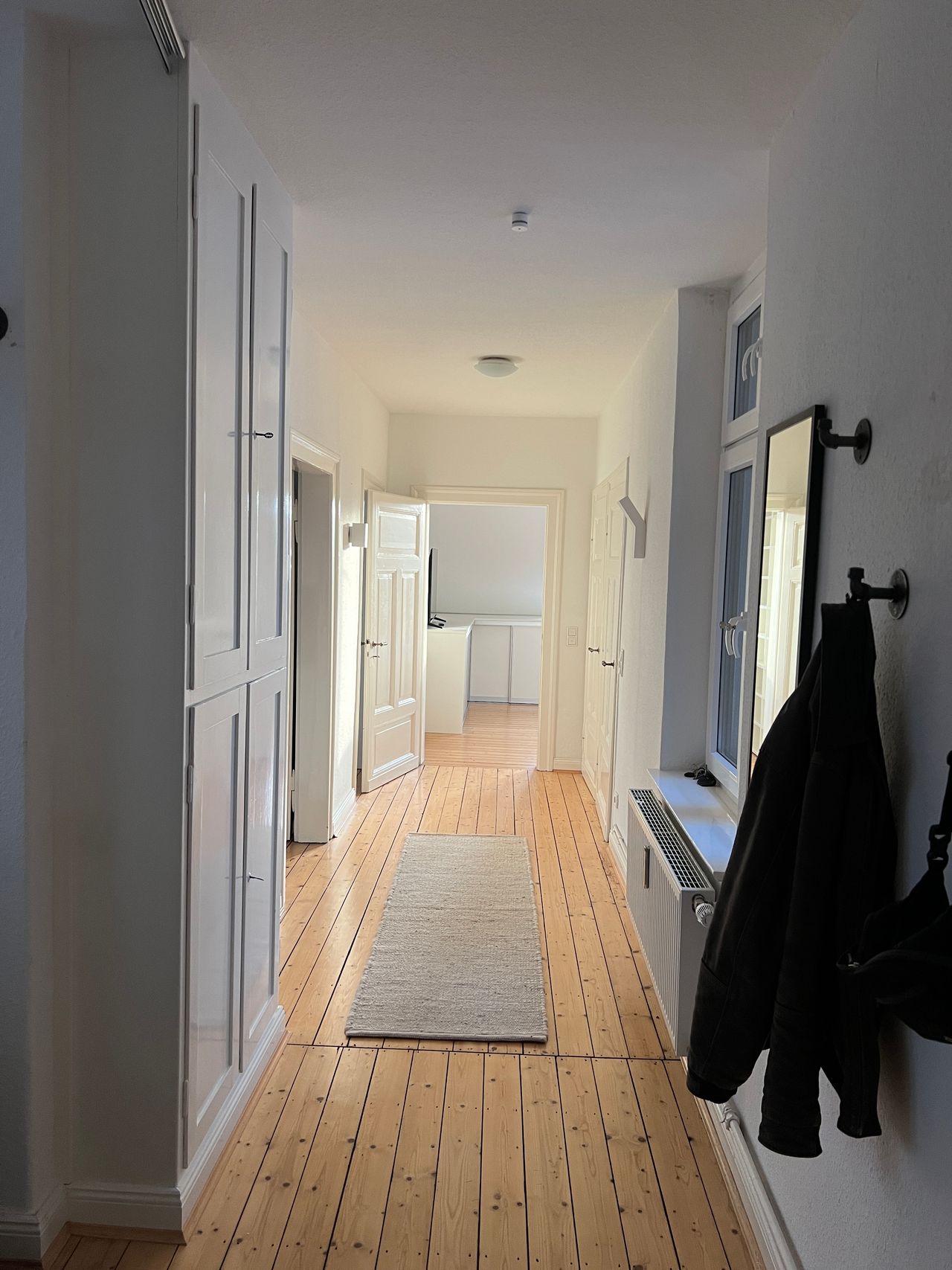 Hallo! Die mit einem alten Dielenboden versehene Wohnung liegt im 4. Obergeschoss. In dem angegebenen Mietpreis sind alle Kosten für den Mieter enthalten, da der Internet, Strom-und Fernwärmevertrag über den Eigentümer läuft und pauschal verrechnet wird. English-speakers are welcome Ausstattung: schöner Dielenboden Altbau hohe Räume neue Möblierung: - massive Holztische - Einbauküche - Waschmaschine im warmen Keller - Kleiderschrank, 1,60 m breites Bett, Sofa - Fernseher mit Smart-TV-Funktio...