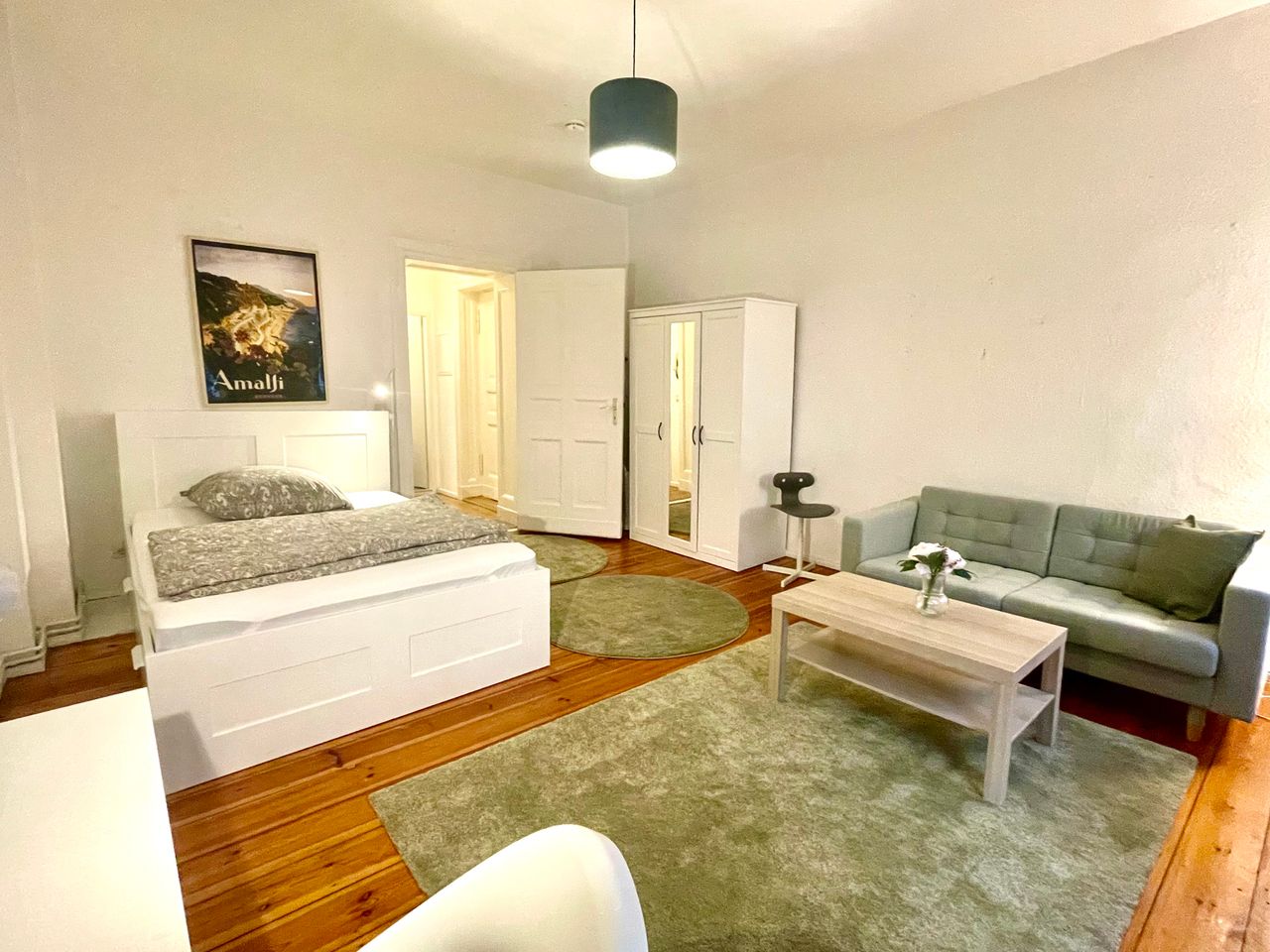 Die möblierte Ein-Zimmer-Wohnung liegt im dritten Stock eines begehrten Viertels in Prenzlauer Berg.