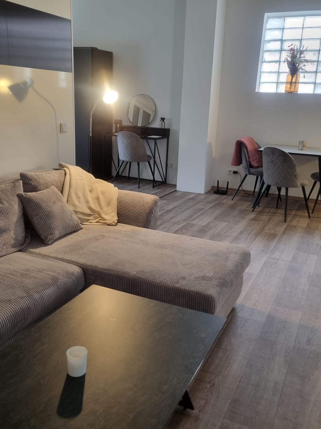 New furnished apartment, with an open floorplan.
