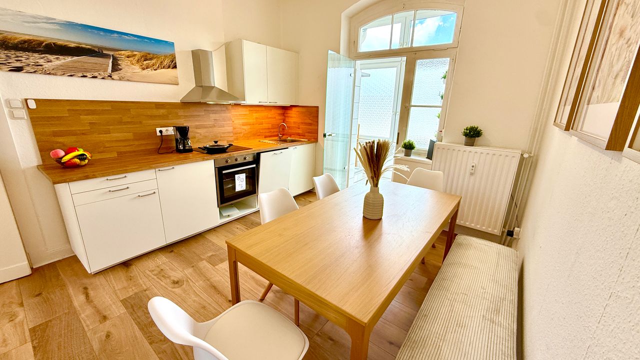 Erstbezug nach Renovierung! Hochwertiger neuer Vinylboden mit großen Holzplanken, komplett neue Küche mit Spülmaschine, 160x200 Doppelbett, Smart TV, Couch, 100Mbit schnelles Internet, sehr hell mit hohen Decken, zentral gelegen am Krayer Markt und nah an der A40 Autobahn. Neuer Waschtrockner im Keller. 2. Etage.