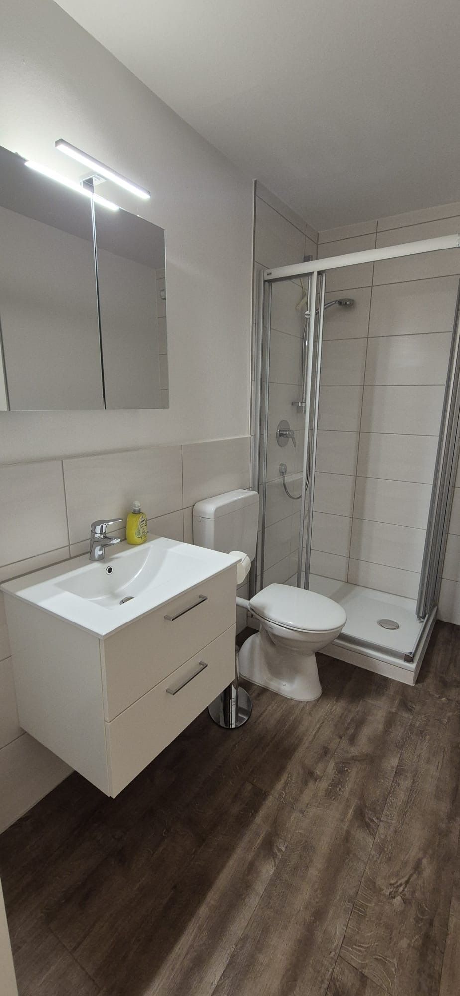 Fully equipped, renovated 1-room apartment with balcony and parking space centrally located in Bernhausen – shopping, restaurants, banks – all within walking distance
