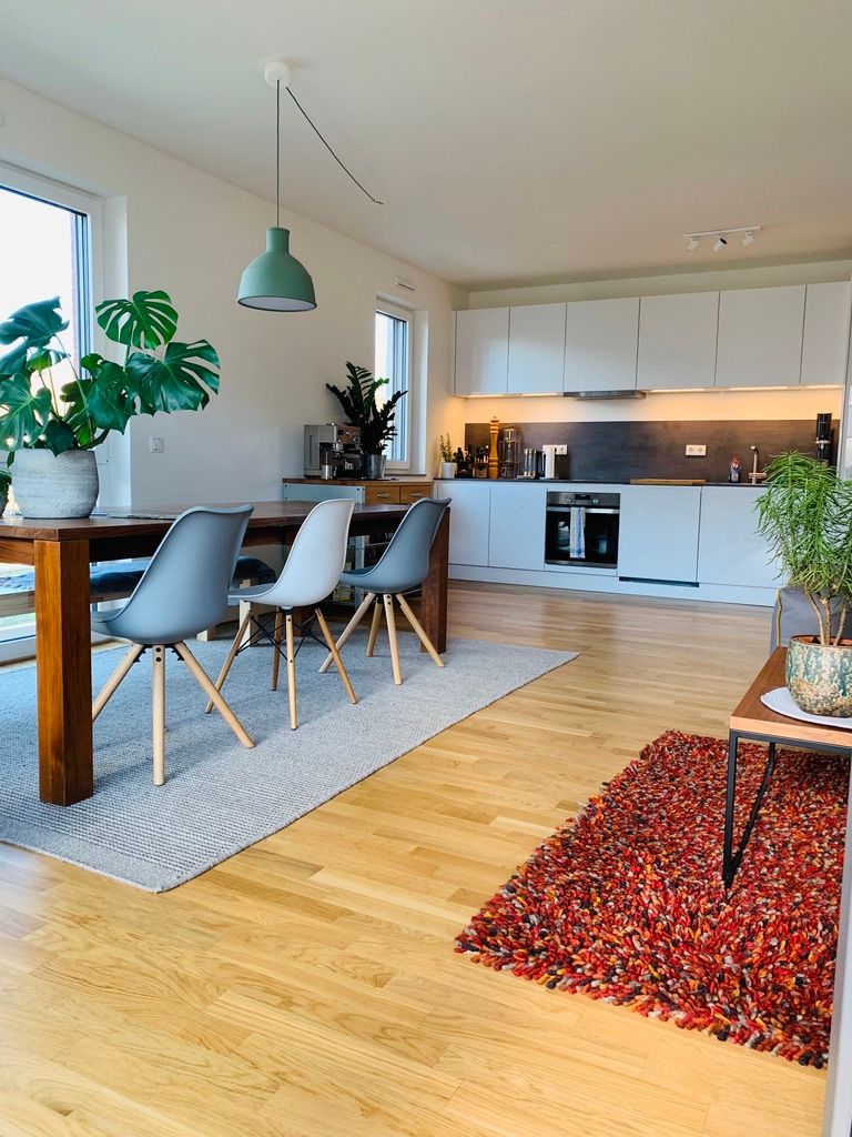 The 3 room apartment with approx. 110 square meters can accommodate up to 3 people. The bright, spacious new apartment (approx. 110 square meters) has a spacious living room with a large Smart TV (65 "), a large fabric couch and a very spacious kitchen island with high-quality built-in appliances. The modern, spacious bathroom has a bathtub and a large window. The other bathroom has a spacious glass-enclosed shower. Furthermore, the apartment has a bedroom with a spacious guest wardrobe and a...