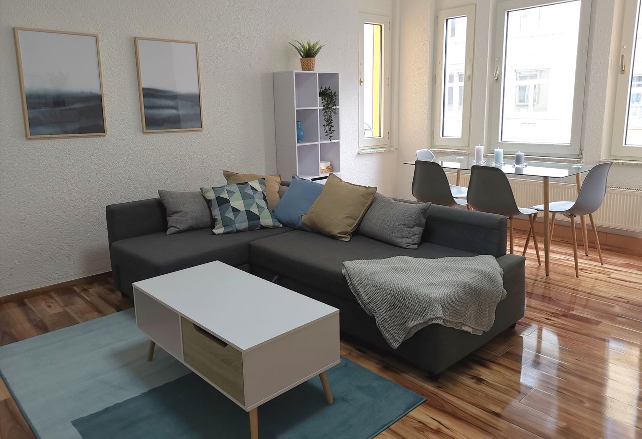 Welcome to this really well-designed 2.5 room apartment in the Dortmund harbor district. The apartment is on the 1st floor of a beautiful old building (1909) which is continuously modernized and maintained. Through a small balcony to the rear building you have a view of the green, quiet garden and can enjoy the fresh air in summer. The 2 rooms are divided perfectly so that they can either be used as a bedroom / living room, or as a bedroom and separate living room. The fitted kitchen is fully eq...