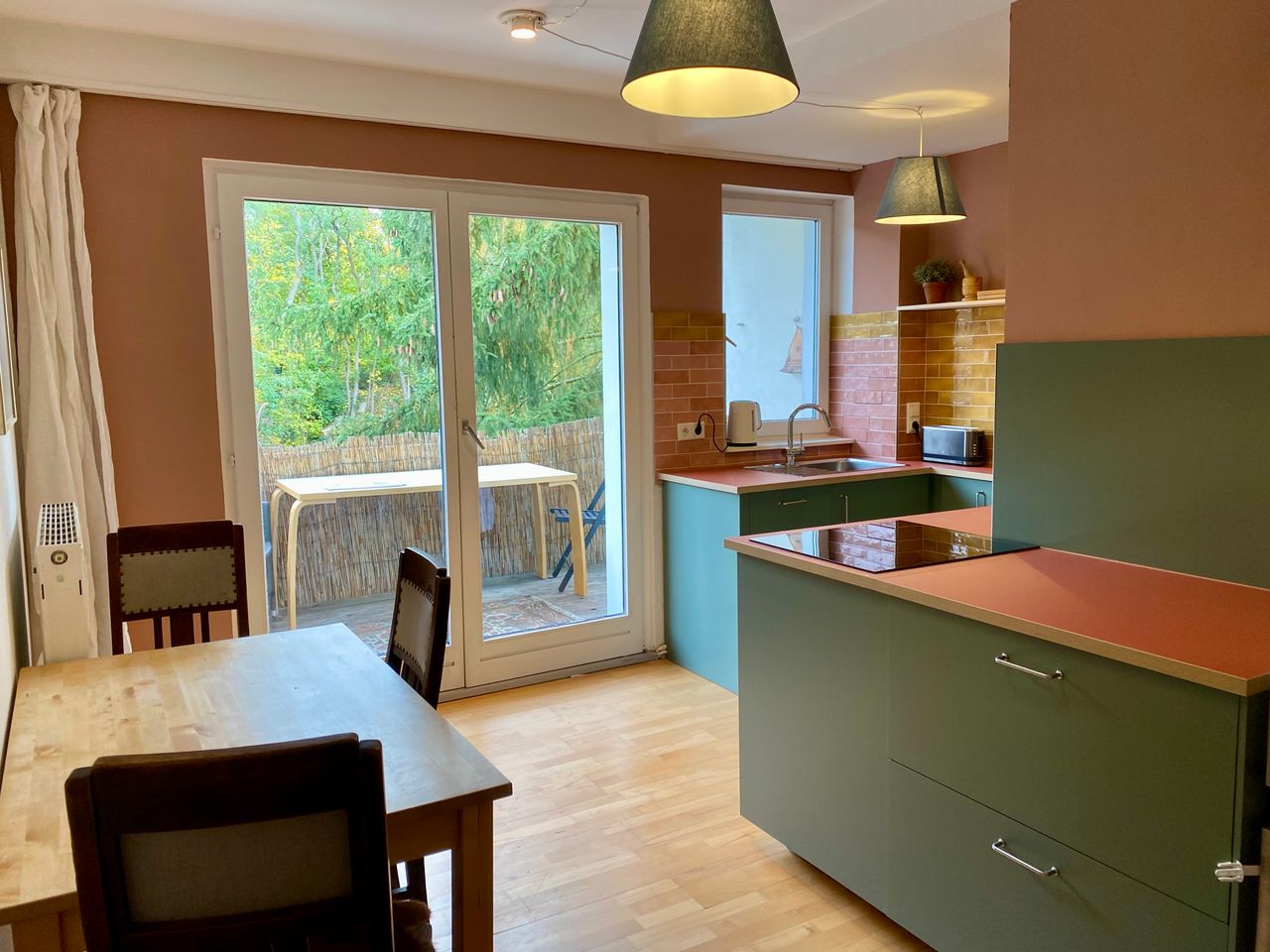 Our freshly renovated and spacious 4-room apartment in leafy Berlin-Hermsdorf offers Wgs, couples or families a warm and comfortable home away from home. The apartment is fully furnished, and for longer stays the furniture can be adjusted to suit your needs. You will be living in a friendly, family-oriented environment: the landlords — two sisters living in the house with their children — are open, welcoming, and always available if you need anything. The location is quiet and green, yet well co...