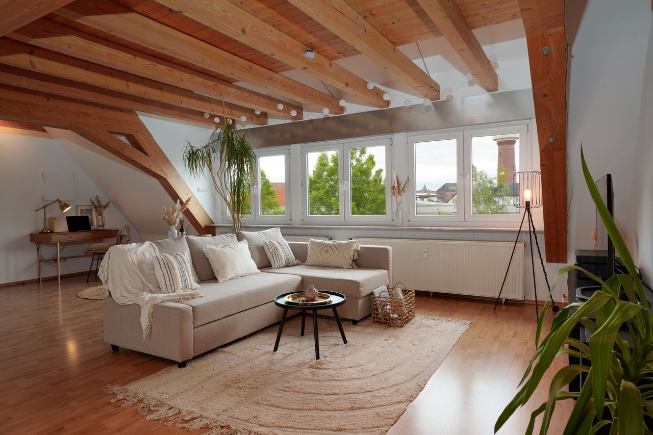 Inspired by the boho style and minimalistically furnished - feel good in around 97 square meters! Relax and linger in the magical boho apartment with a fantastic 35sqm roof terrace. The spacious living and dining area forms the center of the apartment. Cooking, sitting together and relaxing are combined here. Prepare your favorite dishes in the large, modern kitchen and invite friends, family and colleagues to linger. Start the day with a wonderful cup of coffee from the Nespresso machine or ...