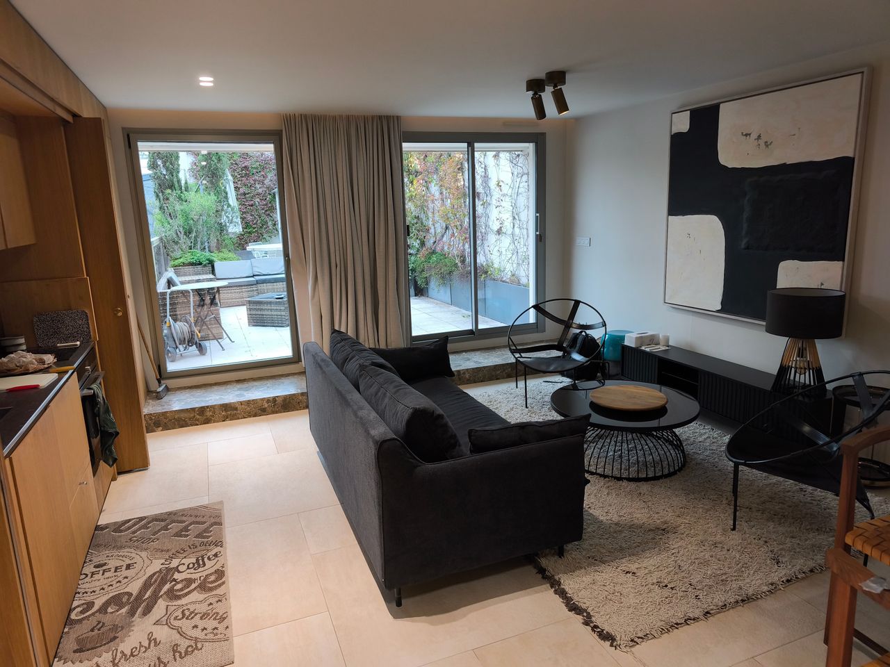 Magnificent large 58m² air-conditioned one-bedroom apartment, designed and decorated by an interior designer, comprising 1 main room with living room, dining room, and linear kitchen (butterfly doors). Induction hob, extractor hood, oven, washing machine, and microwave. Very well equipped with crockery and kitchen accessories. 1 large bedroom with desk, cupboards, dressing room, and TV. 1 large toilet with washbasin, 1 bathroom with large walk-in shower, marble sink. Large landscaped terrace of ...