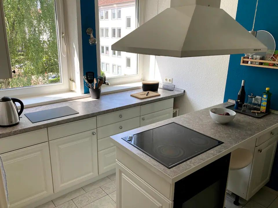 From this centrally located accommodation you can quickly reach the main train station, the city center and the trade fair. There is even a direct subway connection to the fair. The balcony is located in a very quiet street and the kitchen island invites you to cook. A beamer (no TV) with AndroidOS allows relaxed streaming. The apartment is newly painted and furnished. Exterior shutters ensure a restful sleep.