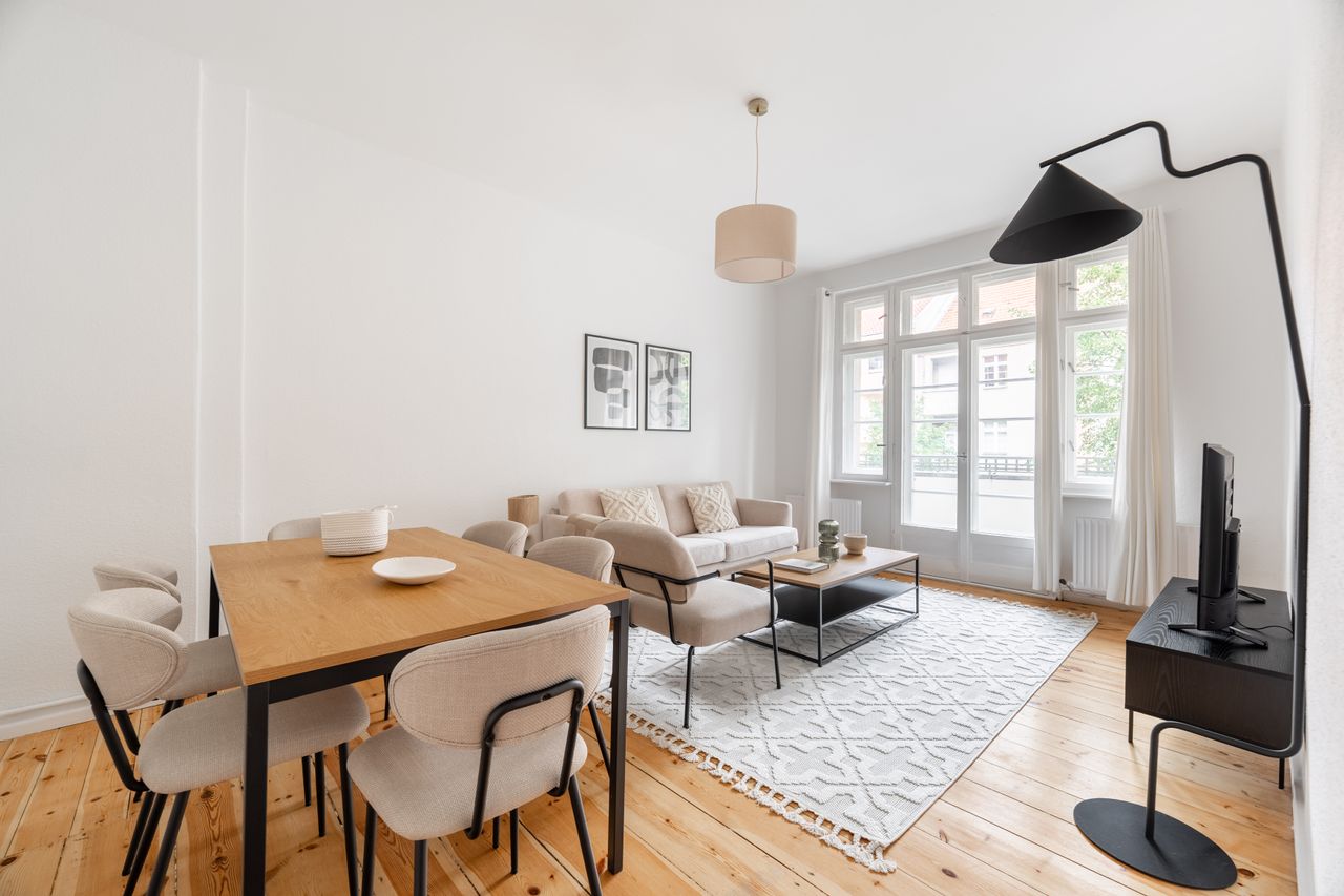 This stunning furnished three bedroom apartment features contemporary design, a fully equipped kitchen, and a cozy living area with breathtaking views. Perfectly situated, you'll have easy access to everything that makes Berlin vibrant and exciting!