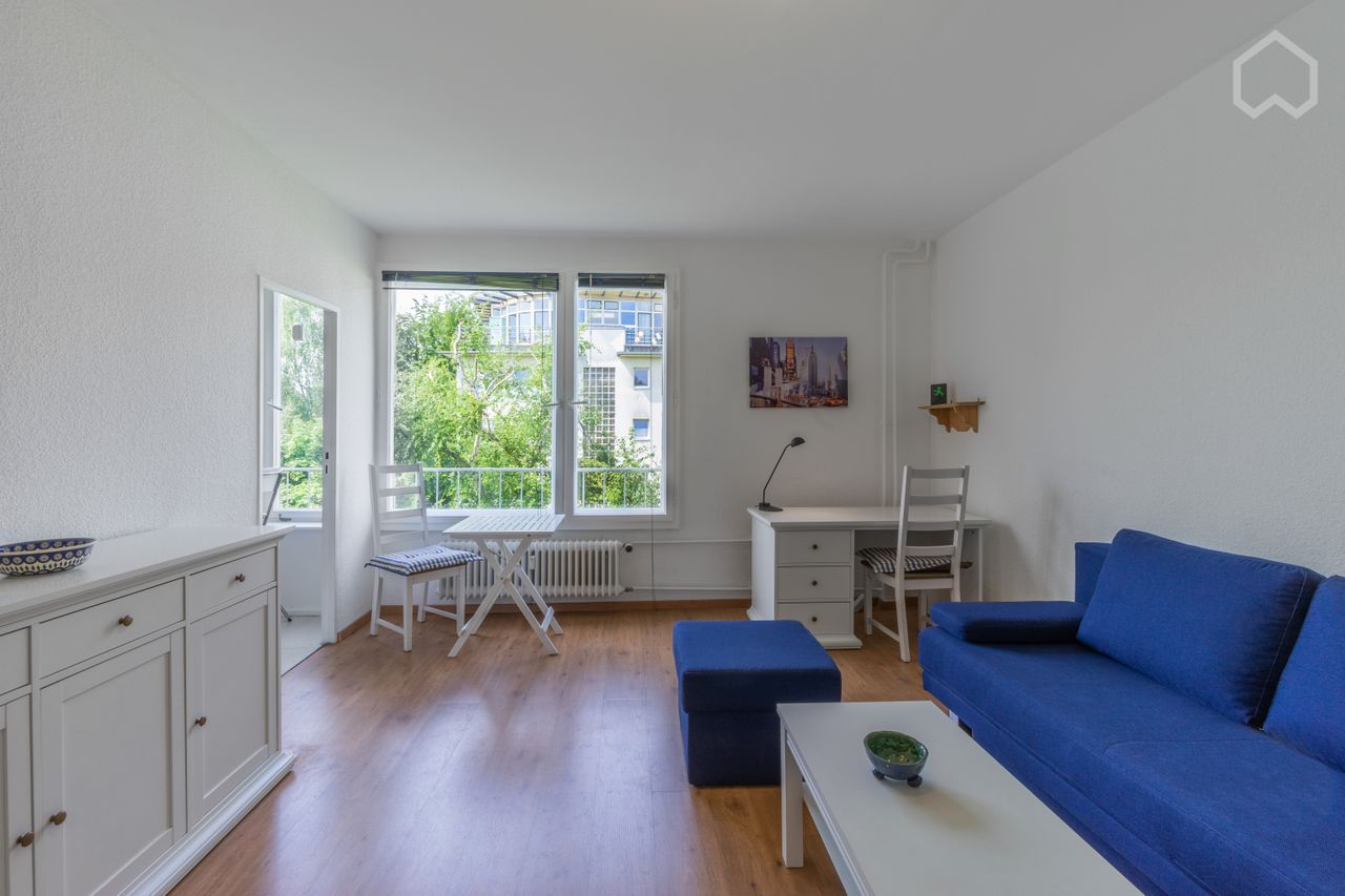 The big window of the living room and the kitchens goes to the green area behind the building. The green garden area behind the building may be used as long as neighbors will nont be disturbed. The bed in the living room is for one person. An additional place to sleep is the double bed couch. There is a separate small storage room in the flat. Direct metro connection with U6 to the scene areas of Tempelhof, Kreuzberg, Mitte, Wedding. Direct metro-bus connection to Steglitz.