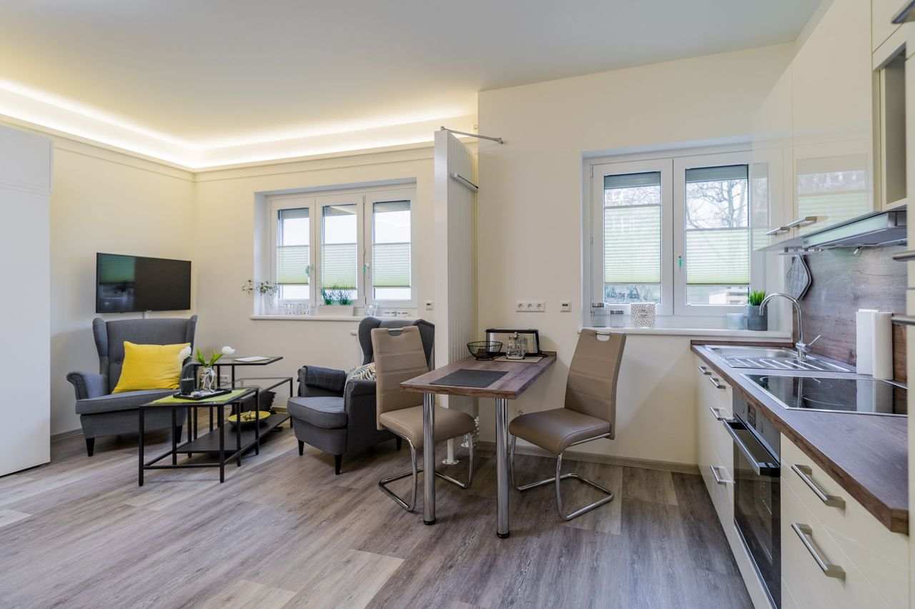 The studio is located in the trendy "alternative" residential area of Berlin-Neukölln. The studio was completely refurbished at the end of 2018 / beginning of 2019 and equipped with high-quality materials and furniture. The owner did not only value the general things of a furnished studio, but also thought of the inconspicuous things: a representative dining, cooking and living area was created, the rear cabinet paneling next to the bed is color-matched with leather, different decorations and ...