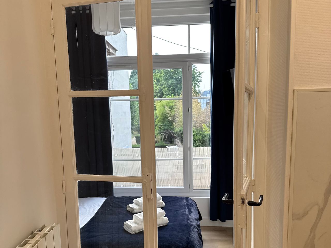 Available for up to 2 guests 1 double bed (140x190) Wi-Fi and TV with Netflix included Fully equipped apartment Apartment amenities include: 90 cm flat-screen HD TV Ultra-fast fiber Wi-Fi Oven Microwave 3-burner induction cooktop Refrigerator with freezer Tassimo coffee machine with pods provided Cordless vacuum cleaner Storage shelves for shoes and coats Towels and bed linen provided Dishes, cutlery, and cookware Kitchen utensils Hairdryer Shower gel and shampoo All Versailles train stations ar...