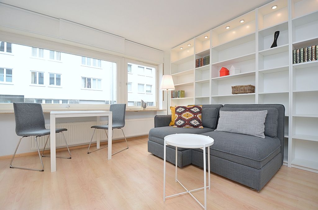 Helle, neu und modern möblierte 1-Zimmer Wohnung in zentraler und beliebter Wohnlage in Stuttgart Mitte/ West. Alle Einkaufsmöglichkeiten, Geschäfte des täglichen Bedarfs, Shops, Restaurants, die Königstraße sowie die öffentlichen Verkehrsmittel befinden sich in fußläufiger Nähe. Der Kleiderschrank befindet sich im Eingangsbereich. Die moderne, separate Küche ist voll ausgestattet. Das komplett neue Badezimmer verfügt über eine Dusche. Hier befindet sich auch der Waschtrockner. Internet (W-Lan) ...