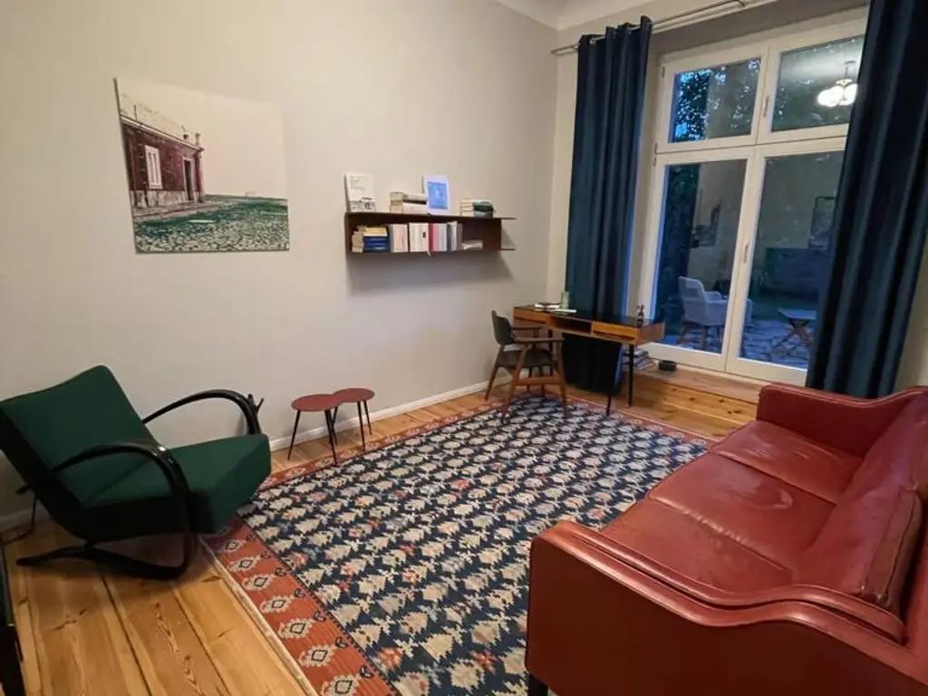Stylish & Quiet 1-Bedroom Apartment with Terrace and Piano This charming 42 m² apartment in a quiet rear building impresses with its elegant mid-century design, high-quality vintage furniture, and thoughtful amenities. Perfect for a single tenant who values aesthetics, comfort, and a relaxing atmosphere. Highlights: • Quiet location in a rear building with a green view • High-quality mid-century furnishings • Kawai piano for relaxation • Private terrace with natural stone flooring and a sm...
