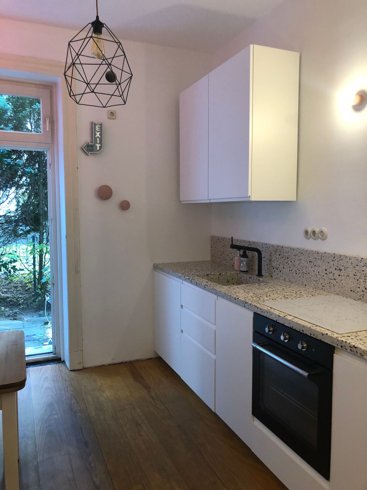 Sehr ruhiges Apartment. Nach hinten zum Hof/Garten gerichtet. Küche mit Wasch– und Spülmaschine ist erst 2018 eingebaut worden. Auch die Möbel sind von 2018. Very quiet apartment. Towards the backyard / garden. Kitchen with washing machine and dishwasher has been installed until 2018. Also the furniture is from 2018.