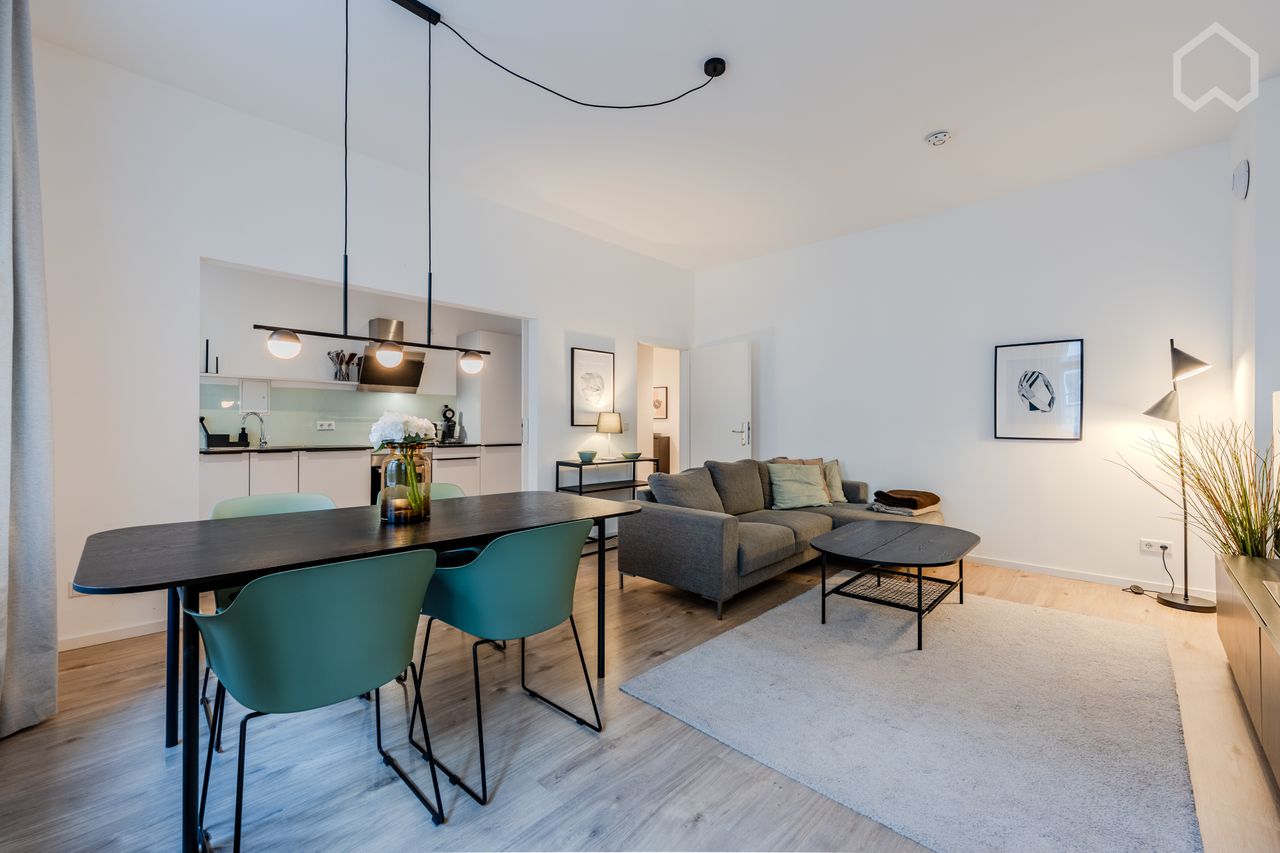Welcome to your modern furnished 2-bedroom apartment nestled in an Altbau in the vibrant neighborhood of Friedrichshain. Located amidst an array of restaurants, cafes, and shops, this abode offers both comfort and convenience. Situated close to public transportation, exploring Berlin is effortless. Step inside to discover a fully furnished space thoughtfully designed to cater to your every need. The kitchen is equipped with all essentials, perfect for whipping up culinary delights. Unwind in th...
