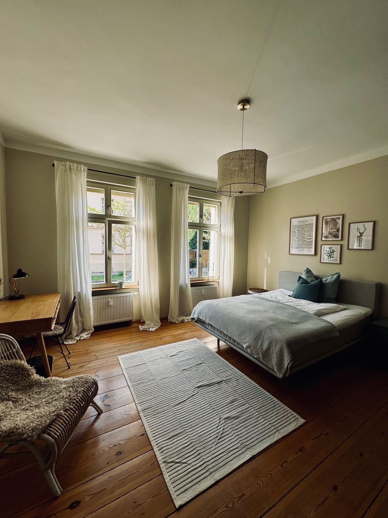Light-flooded, newly renovated and stylishly and cosily furnished flat in a quiet yet central location in Potsdam-Babelsberg. Directly next to Babelsberg Park (entrance 3 minutes on foot), the flat is located in a residential area in the Babelsberg district, not far from the film studio. Everything is easily accessible on foot and by bike, and it takes 15 minutes to get to Potsdam city centre. There are 4 residential units in the beautifully renovated old building, the rental property is a few s...