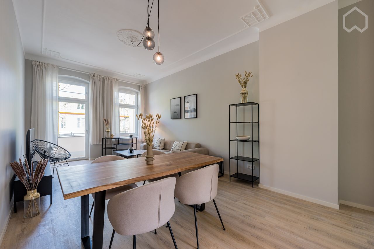 High-quality renovated, fully furnished and fully equipped apartment in central Berlin location with balcony. Key Facts of the apartment: - 2 rooms - Bedroom with double bed (160cm) - Own working area with fast internet (5G) - Large balcony - Fully equipped (washing machine, dishwasher, coffee maker, all kitchen utensils, towels, bed linen.... Are you looking for a very special apartment, in which you immediately feel comfortable and in which you do not have to worry about anything? Then we ...