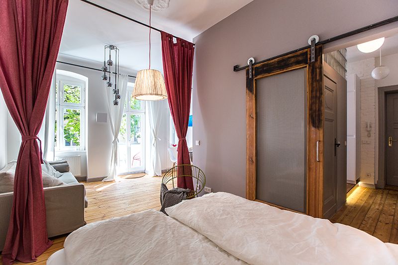 The apartment is light. There is a balcony oriented into a calm backyard. The apartment is practically equipted and at the same time doesn’t loose certain playfulness. In the house the local people live, so there is a quiet area. There is also free parking place available in front if the house. The supermarket and a bus station is very close to the apartment. A metro station is approximately 10 minutes far by the walk. There is a pleasant social life in the surroundings.