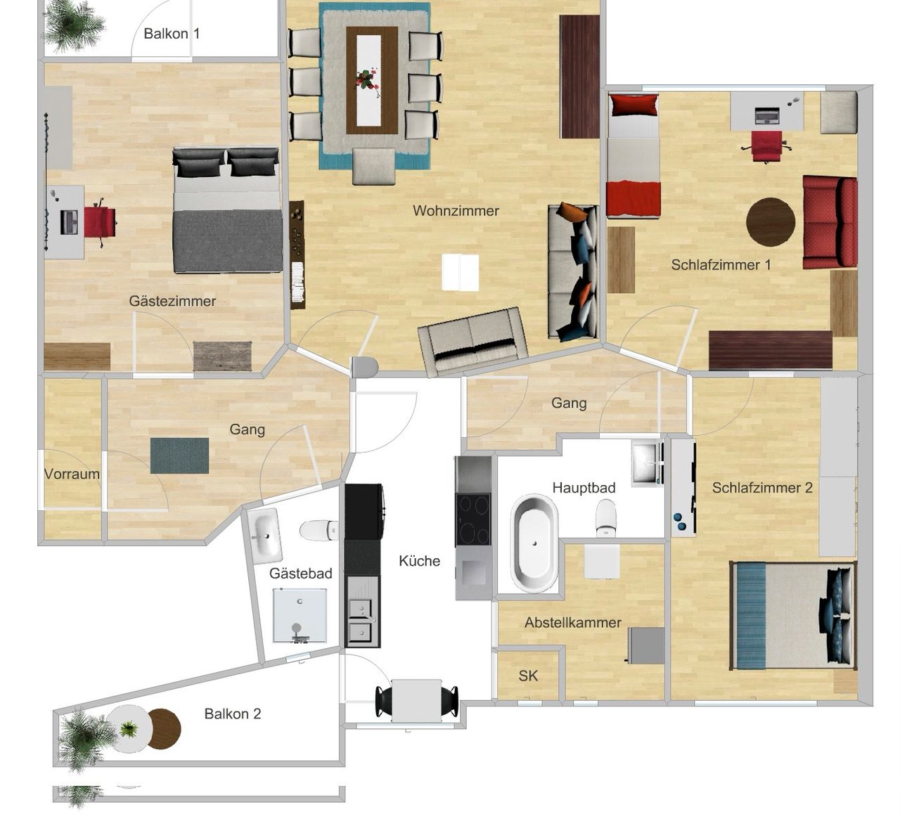 120 m2, Floor: 24 Rooms7 Beds4 People