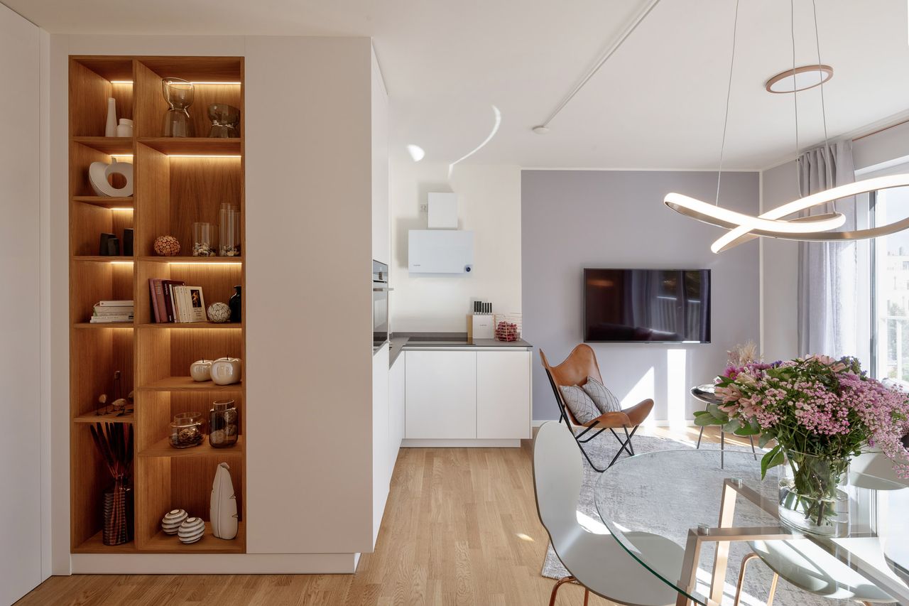 Modern flat 38 m2 in the heart of Dresden-Neustadt. Evenings are best enjoyed on the balcony with a view of the inner courtyard and over the rooftops of the Neustadt town houses. The flat offers an all-round carefree package with complete equipment. The flat has a high-quality, fully equipped kitchen with coffee machine, combi oven, induction hob, dishwasher and fridge. The kitchen also includes the necessary utensils to prepare a meal. Wine glasses, a high-quality set of pots and pans, porc...
