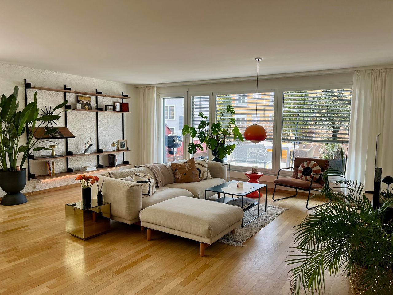 Experience a curated, 125 m² sanctuary where Mid-Century Modern elegance meets the serenity of Lake Zürich. Bathed in natural light from its premier corner position, the apartment features a sophisticated palette of vintage orange and champagne tones, offering an "Old Money" aesthetic that is both warm and architectural. Expansive Living: A grand, open-concept lounge flowing onto 36 m² of private outdoor space. Dual Terraces: Two distinct terraces (13 m² & 23 m²) for al fresco dining and Uetli...