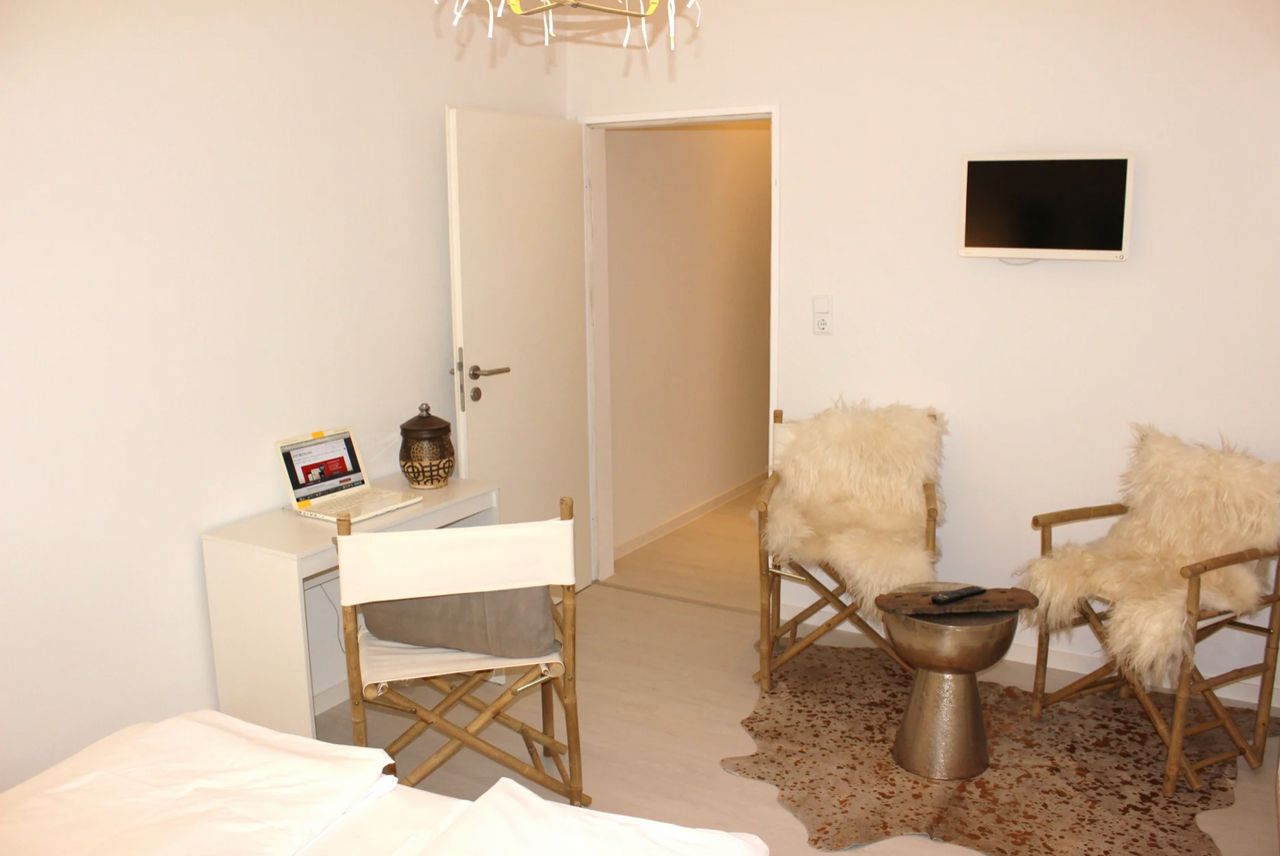 Das angebotene Appartement ist sehr gemütlich, modern und voll ausgestattet. Es verfügt über eine separate Küche mit Essgelegenheit, zwei Designsessel, ein Boxspringbett (1,60x2,00 m), Flachbildschirm, Schreibtischarbeitsplatz, Garderobenschrank. Bei der Anmietung mit 2 Personen erhöht sich der Preis um € 149,00 / monatlich. Internet wird mit € 35,00 / monatlich abgerechnet.