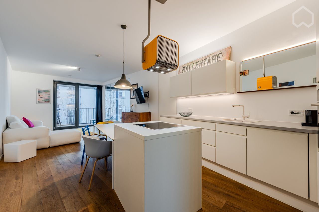 This fully equipped 81 sqm apartment offers premium living comfort on the 2nd floor (easily accessible by elevator). The three spacious rooms are stylishly furnished and ready for immediate move-in—perfect for couples, small families, or professionals working from home. A special highlight is the private balcony and the access to the shared, well-maintained garden. For your convenience, bicycles are available in the basement and can be used freely (please note: use is only permitted with valid ...