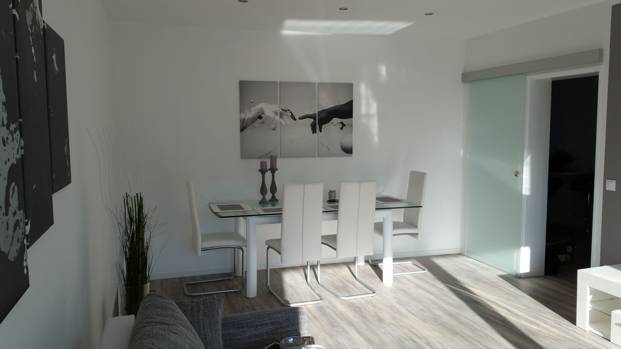 This newly renovated and stylishly furnished apartment offers everything you need for a comfortable stay: Bright bathroom with large window and separate toilet Open-plan kitchen with breakfast bar, fully equipped Spacious bedroom with ample storage Large living room with cozy sofa bed and access to the balcony The apartment is located in a quiet residential building in Alt-Homberg – central yet surrounded by greenery. A video surveilled parking space as well as an underground garage are av...
