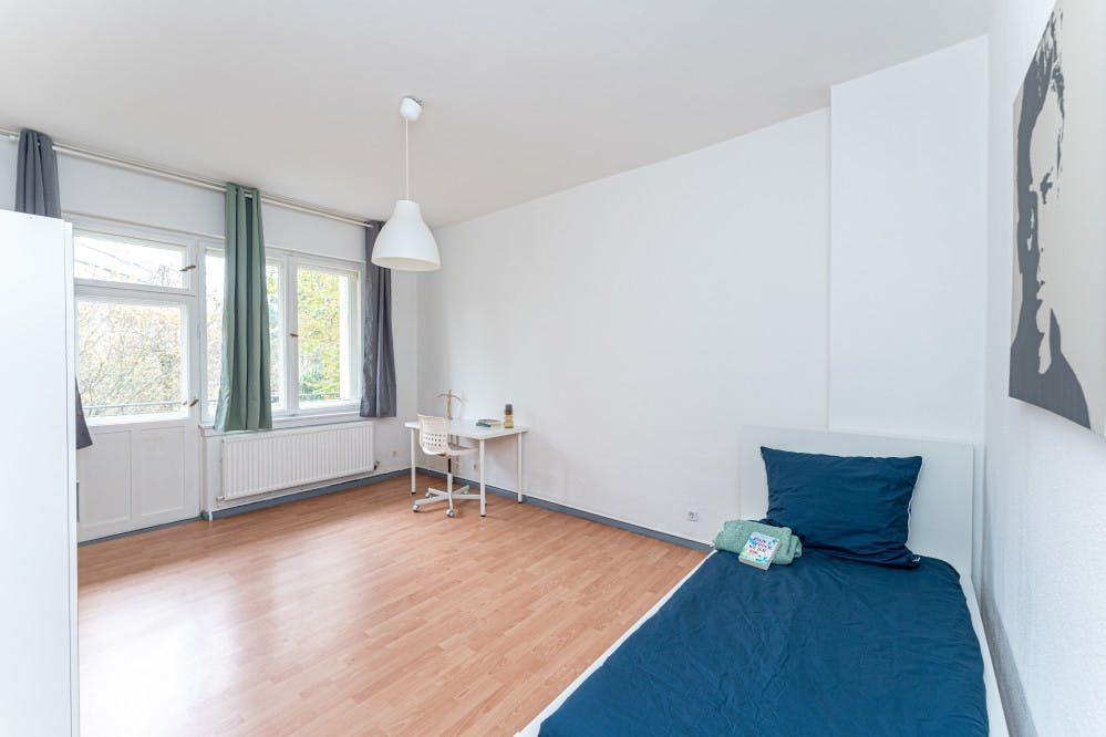 Are you searching for a simple but sunlit space to share? With tons of natural light throughout, minimalist decor, and a great location, this shared apartment is pretty but very practical. Your room comes furnished with a single bed, desk, and a wardrobe to store your belongings. You will share the bathroom and the kitchen, which is fully equipped.We think this is a great spot for anyone in search of a no-nonsense spot to share in the city.Rental Contract: Termination is only possible at the end...