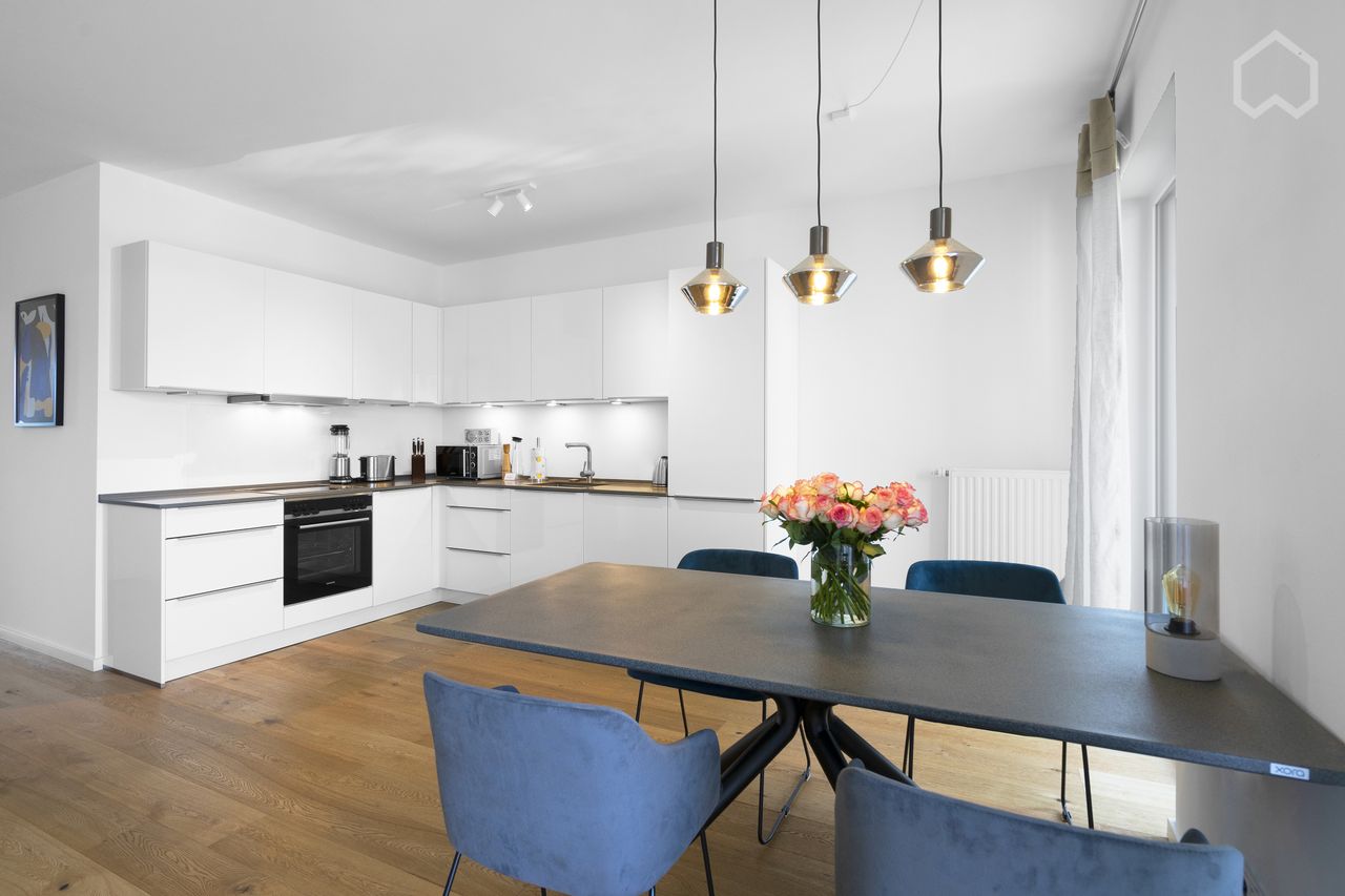 Be my guests in this new apartment complex in the popular Hamburg district of Bramfeld. This beautiful three-bedroom flat is located on the third floor of a modern building constructed in 2018. It has a large balcony, parquet flooring, triple-glazed windows and a large bathroom. I want to make you feel at home in my flat. It's a great base from which to explore Hamburg. Fabricius offers you not only good connections, but above all an excellent infrastructure. All your daily needs, such as shops ...