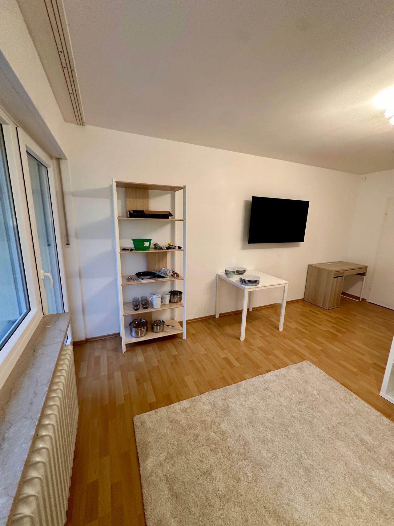 This modern apartment offers a well-designed layout across approx. 35 m² and is ideal for 1–2 people. The unit is fully furnished and equipped with high-quality amenities, allowing you to move in without purchasing any furniture. Unpack your suitcase – done. The open-plan living and sleeping area is bright, spacious, and provides ample storage. A new 1.40 m wide double bed, a comfortable two-seater sofa, a 55-inch smart TV with a swivel wall mount, a dining table with two chairs, and a workspace...