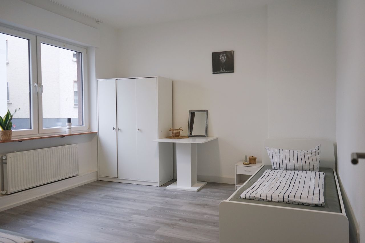 Welcome to your newly renovated, fully furnished apartment in Neuwied! The accommodation offers everything you need for a comfortable, practical and relaxed stay – perfect for guests looking for a quiet, well-kept and well-connected location. 🛏️ Bedroom * modern single beds with new bedding * large wardrobe for sufficient storage space * Desk or storage area * new floor and fresh, bright walls 🍽️ Kitchen * Cooktop * Sink & Storage Space * Refrigerator * Microwave / Mini oven * Dining area ...
