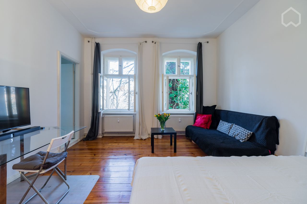 In the middle of Prenzlauer Berg: bright and cosy, great wooden floor, couch to sleep if a guest comes. No neibors to look into your window, open view to a great chestnut and oben fielsd of language school GLS. Bike cellar. Ideal location to do all by bike! Fully equipped, you just move in and feel at home. First dinner is served and morning coffee ready! 5 Min to Tram Kastanienallee 7 min to U Senefelderplatz direction Alex und Ringbahn, 7 Min to Bussen auf Schönhauserallee 15 min to Hbf./...