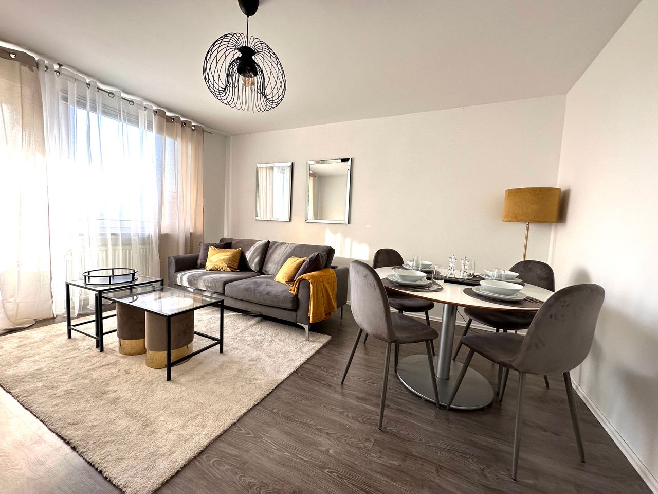 Included in the flat rate rent are all costs such as utilities, heating costs, all furniture, wifi, parking space, etc.. Important: The WLAN we register on you when you move in and when you move out, we log it off again! The property is located in a busy residential area in Monheim Baumberg. Several bus lines are within walking distance. In the immediate vicinity you will find various restaurants, bakeries, two doctors, two supermarkets and a café. There are also two hairdressers, two pharmaci...
