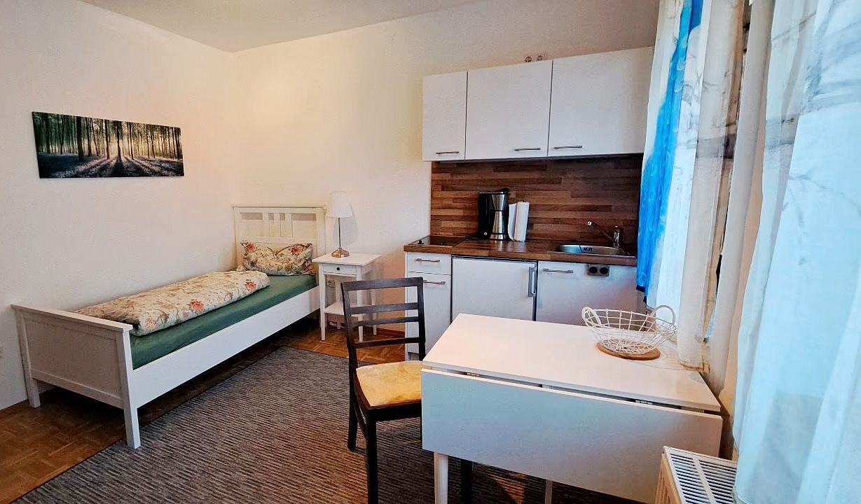 This bright studio apartment on the first floor in Essen-Steele offers comfortable accommodation for one person on about 20 square meters. The combined living and sleeping area includes a single bed, a dining area, a small kitchenette, and a TV. The bathroom features a bathtub with shower attachment and a toilet. Free Wi-Fi is available. This is a non-smoking household, but smoking is permitted in the garden. Thanks to its convenient location in Essen-Steele, shops, restaurants, and public tra...