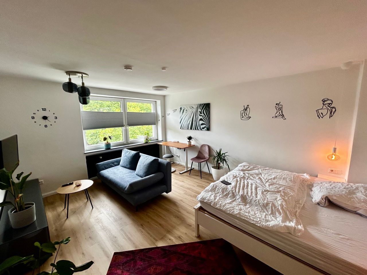 This freshly renovated, fully furnished 40 m² apartment in the heart of Hanover, located right next to the popular E-Damm in the Nordstadt district, offers everything you need to feel at home. In addition to a comfortable 180 cm wide double bed and an extra sofa bed, the apartment includes a spacious wardrobe. A height-adjustable desk allows for ergonomic working from home if needed, and a swivel-mounted TV, viewable from both the couch and the bed, adds extra convenience. The bright bathroom wi...
