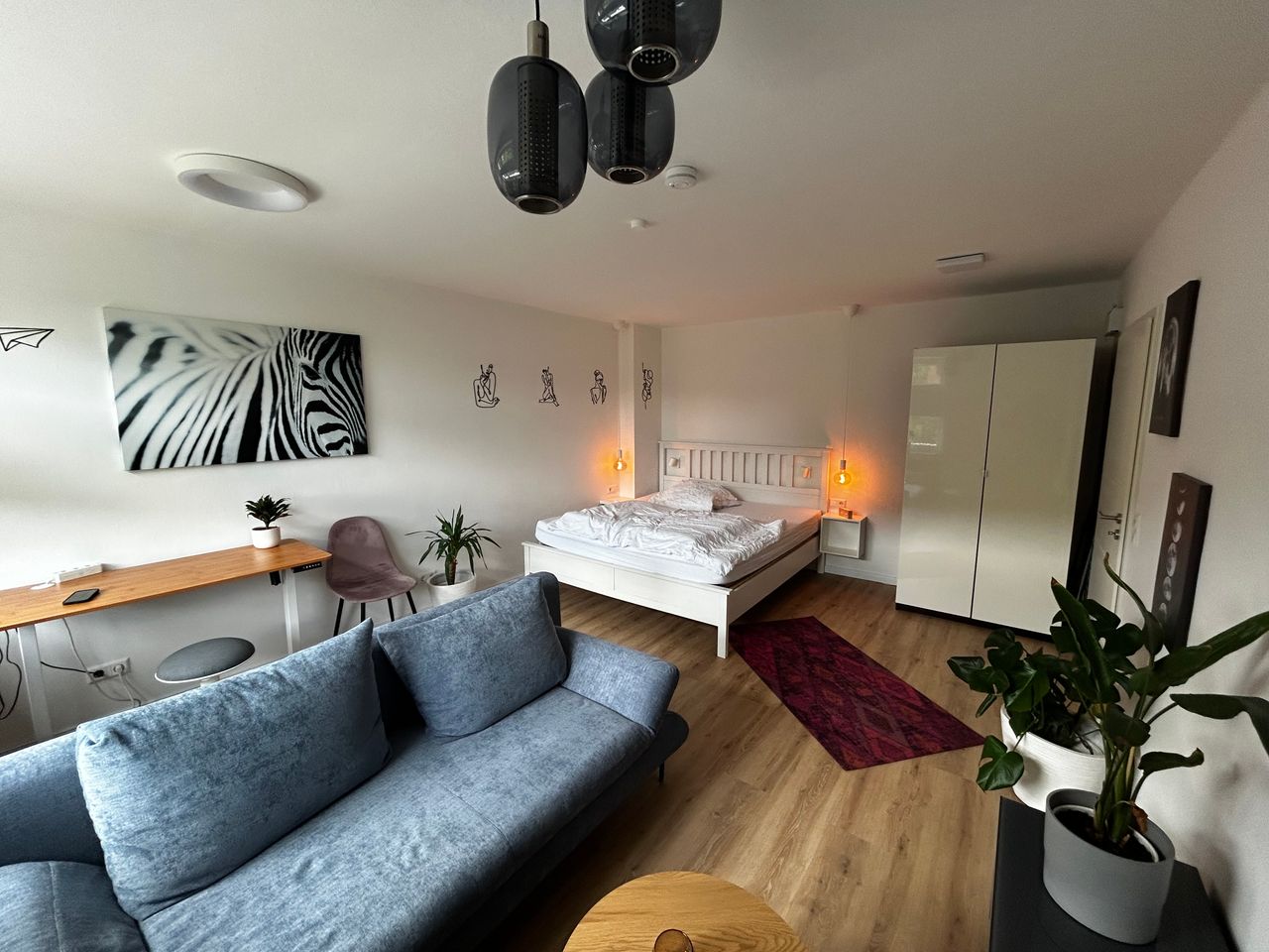 This freshly renovated, fully furnished 40 m² apartment in the heart of Hanover, located right next to the popular E-Damm in the Nordstadt district, offers everything you need to feel at home. In addition to a comfortable 180 cm wide double bed and an extra sofa bed, the apartment includes a spacious wardrobe. A height-adjustable desk allows for ergonomic working from home if needed, and a swivel-mounted TV, viewable from both the couch and the bed, adds extra convenience. The bright bathroom wi...