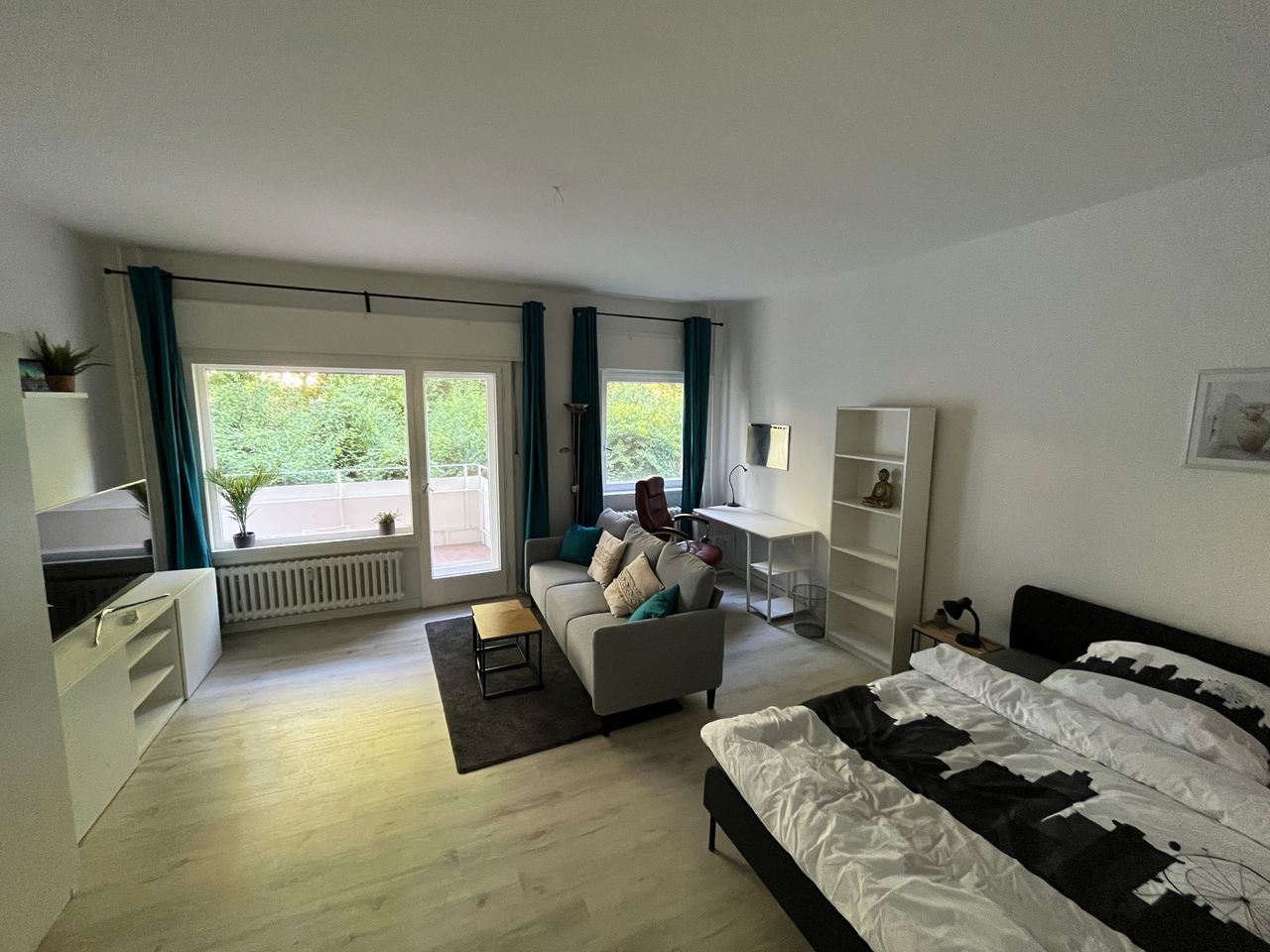 Welcome to your new, freshly renovated, fully furnished 1-room apartment in the idyllic district of Dahlem, Zehlendorf. This quiet raised ground floor apartment offers you everything you need for comfortable and modern living. Features: Living Area: 41 sqm Furnishing: Completely furnished with modern and high-quality furniture Sleeping Area: Cozy 140x200cm bed and spacious bedroom closet Living Area: TV station for relaxing evenings Kitchen: Fully equipped kitchen with stove, oven, refrigerator...